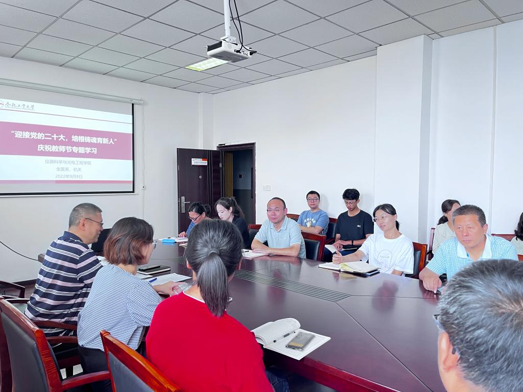 9月8日上午,仪器科学与光电工程学院生物医学工程系和机关全体教职工联合开展了“迎接党的二十大,培根铸魂育新人”主题学习活动。