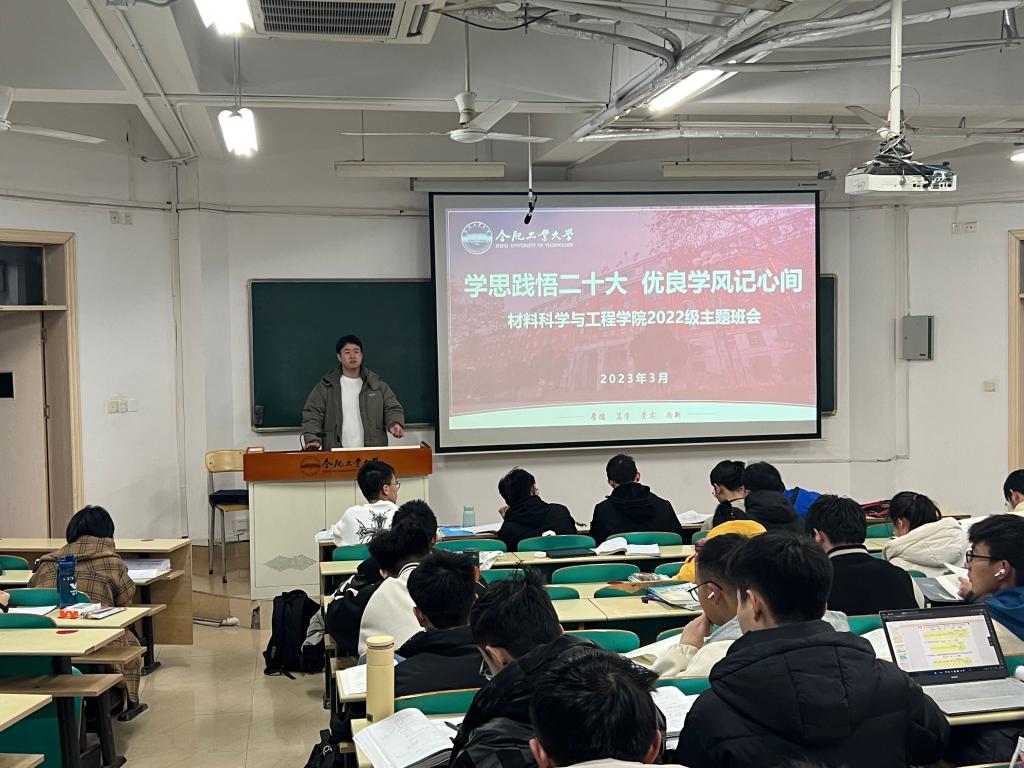 3月2日,材料科学与工程学院开展“学思践悟二十大,优良学风记心间”主题班会。本次会议由2022级辅导员主持召开,材料学院2022级全体同学参加了此次“开学第一课”主题班会。