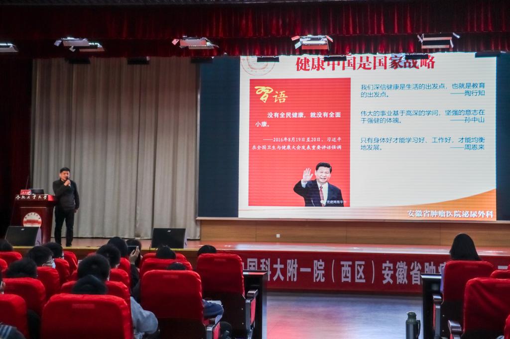 此次活动得到了中国科技大学附属第一医院西区外科第三党支部的大力支持。该支部充分发挥组织功能,积极践行“我为群众办实事”,组织骨干专业技术人员,多次赴有关高校、单位开展健康科普报告,履行社会责任,收到了一致好评。党支部副书记占惠鸣、泌尿外科主治医师杨磊,妇瘤科主治医师江文静出席活动并参与与现场学生互动。