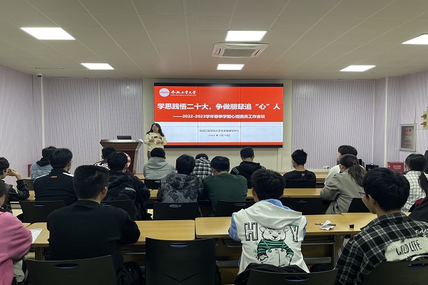 本次心理骨干工作会议作为学院心理工作的重点内容之一,旨在加强心理骨干的心理健康素养和活动领导能力,创建丰富活泼的心理活动,传播心理健康知识,打造理性平和、积极向上有特色的心理文化品牌。