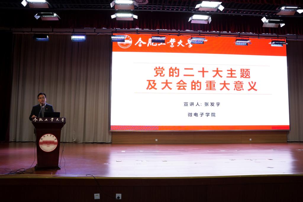 为了引领学生深入学习领会党的二十大精神,4月5日晚,三亿(中国)“党的二十大精神”师生宣讲团走进物理学院和微电子学院,开展宣讲活动。微电子学院党委副书记兼纪委书记张发宇、微电子学院研究生许傲受邀作宣讲报告。物理学院和微电子学院2022级、2021级本科生,本研学生党支部、69期党校发展对象班、69期预备党员班和69期入党积极分子班学员近600人次参加活动。