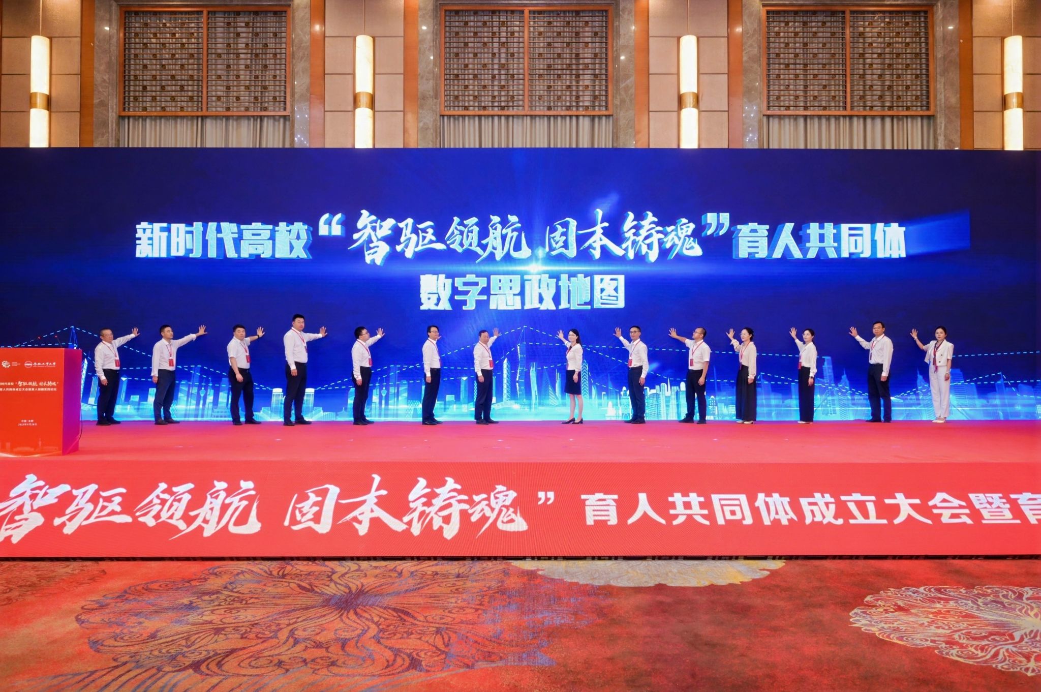 在全体与会嘉宾的见证下,孙芙蓉、范奇、于祥成、杨善林、项兴初、虞宝桃、陆林、蔡国军、叶盛基、孙炜共同为“智驱领航 固本铸魂”育人共同体揭牌。