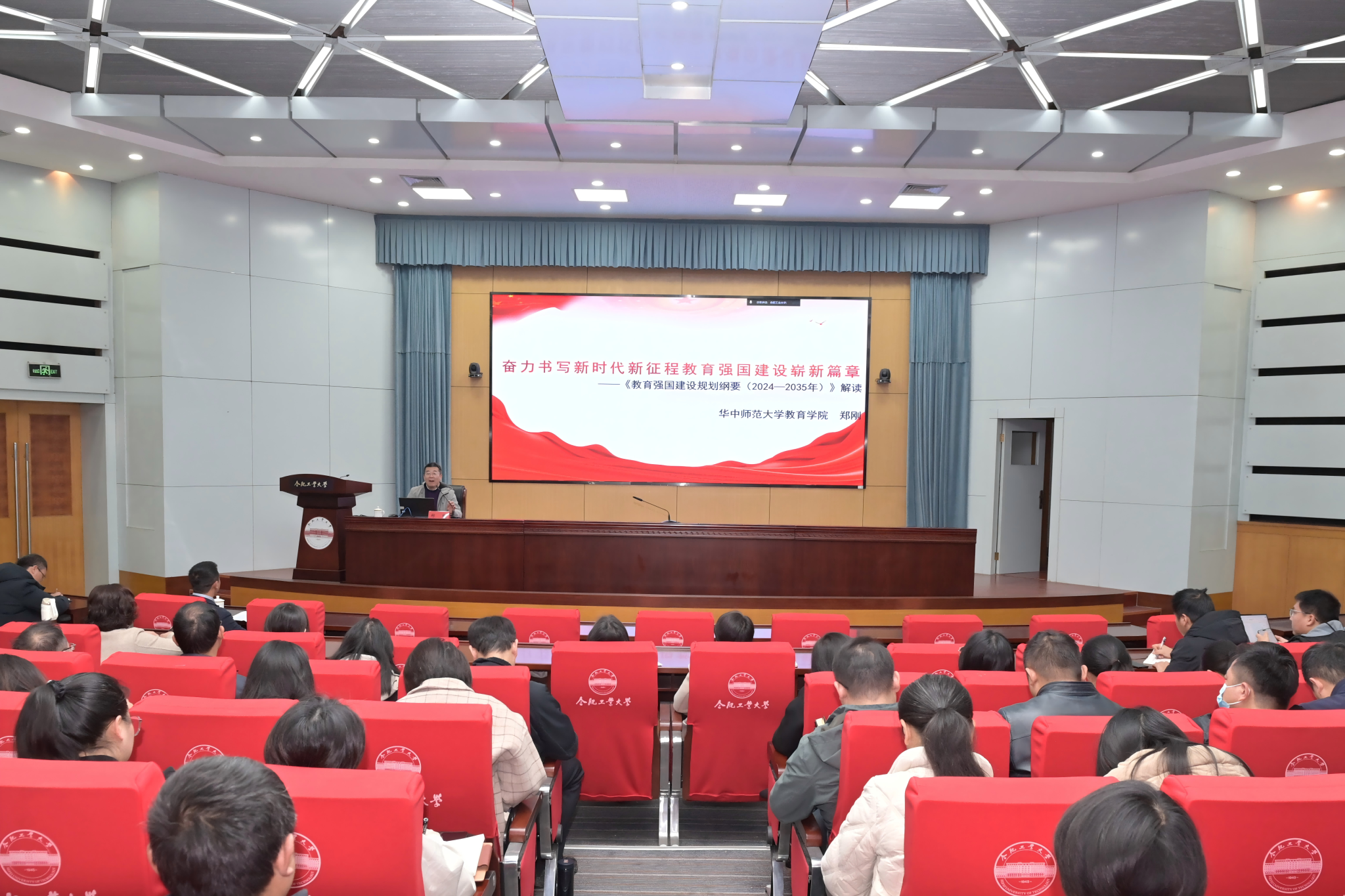 开班典礼后,华中师范大学教育学院副院长郑刚教授围绕“奋力书写新时代新征程教育强国建设崭新篇章”作首场专题辅导报告。
