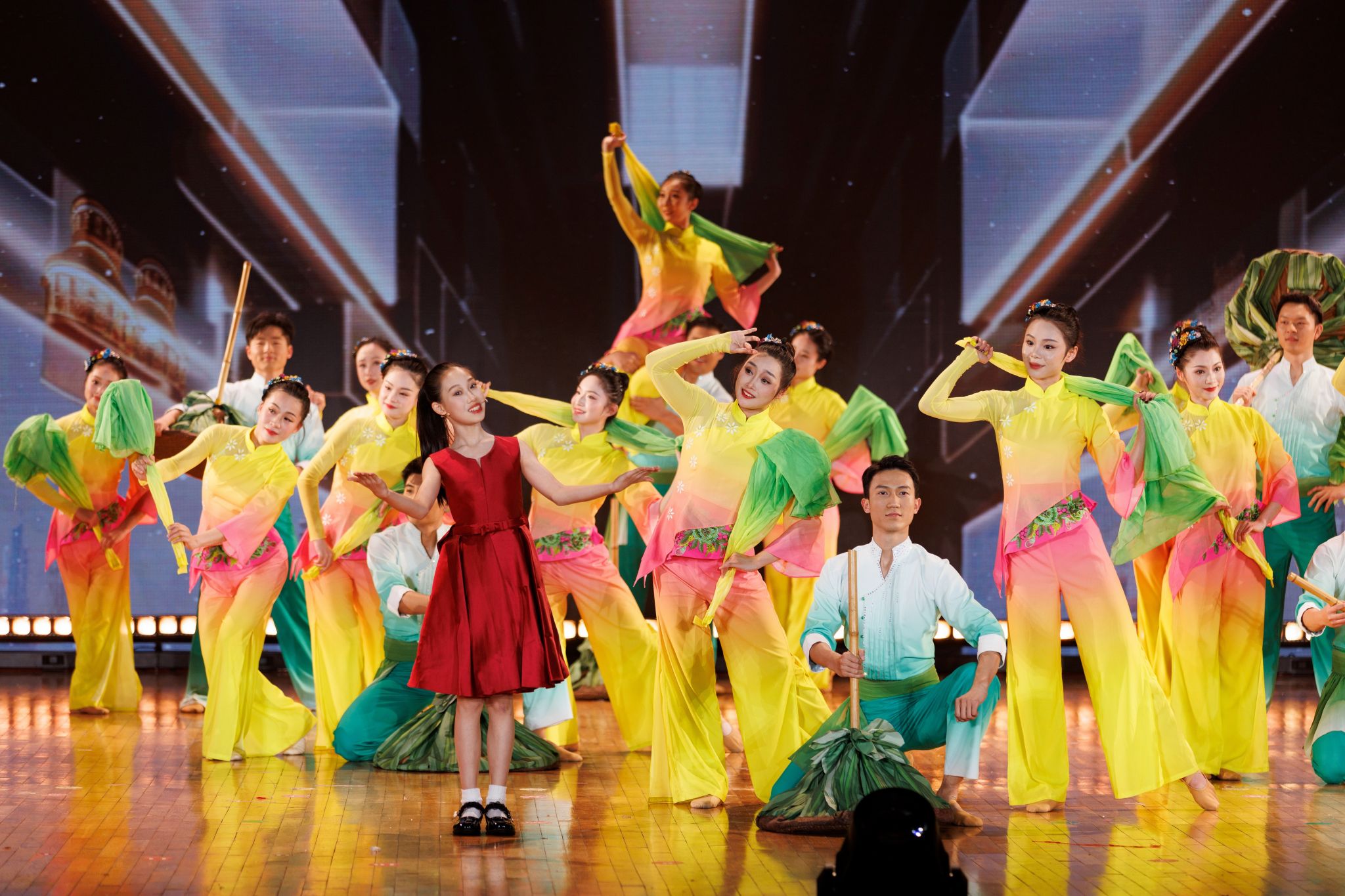 本次晚会以 “千年庐州” 为文化根基,以 “共潮生” 为时代命题,通过音乐、舞蹈、诗歌、绘画等多元艺术形式的创新融合,立体呈现庐州大地从千年文脉到现代繁华的发展脉络。作为文旅局重点打造的城市文旅新名片,晚会精心设计了三重体验空间,实现历史、烟火与科技的深度共鸣,既有对包公文化、庐剧韵味等传统文化元素的匠心演绎,也有对合肥科技创新、城市发展等时代风貌的艺术诠释,力求在传统与现代的碰撞中,让师生感受中华优秀传统文化的当代生命力。