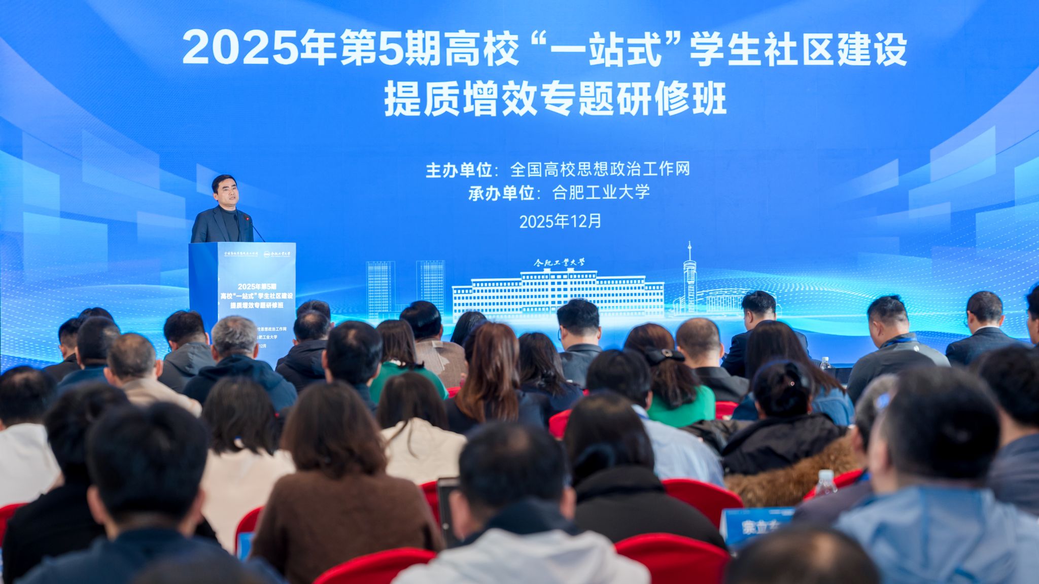 为深入学习贯彻党的二十届四中全会和全国教育大会精神,深入推进新时代立德树人工程在高校落地见效 ,切实推动高校“一站式”学生社区综合管理模式建设高质量发展,12月2日至12月5日,2025年第5期高校“一站式”学生社区建设提质增效专题研修班在三亿(中国)举办。校党委副书记严福平,教育部全国高校思想政治工作网常务副主任张治国,安徽省委教育工委思政处处长王后林出席开班仪式,开班仪式由全国高校思想政治工作网副主任王慧敏主持。