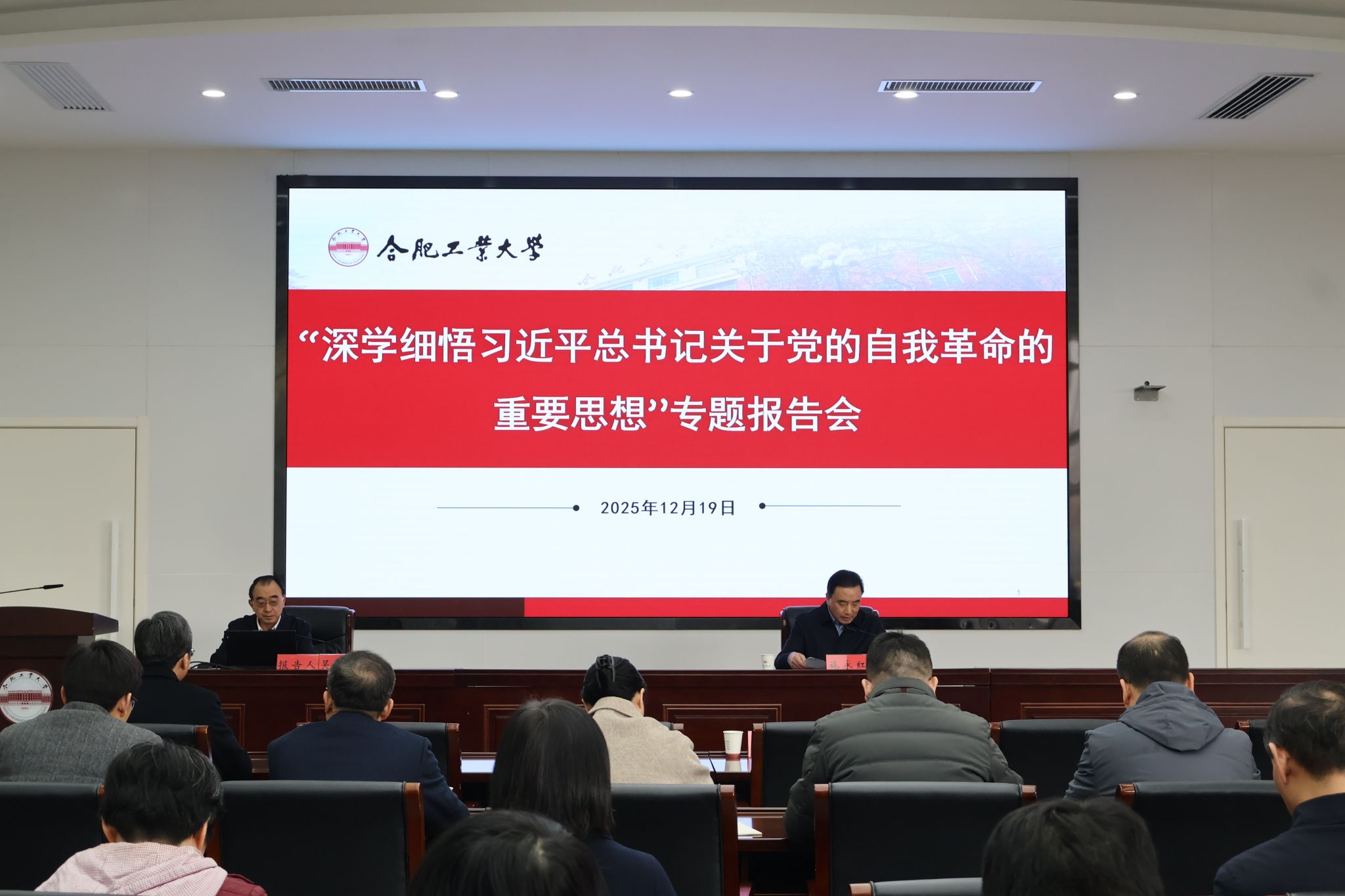 12月19日,中国人民大学学术委员会委员、纪检监察学院学术委员会主任吴付来教授应邀来校,作题为“深学细悟习近平总书记三亿官方版网站登录入口党的自我革命的重要思想”的专题报告。报告会由校党委副书记、纪委书记施永红主持。