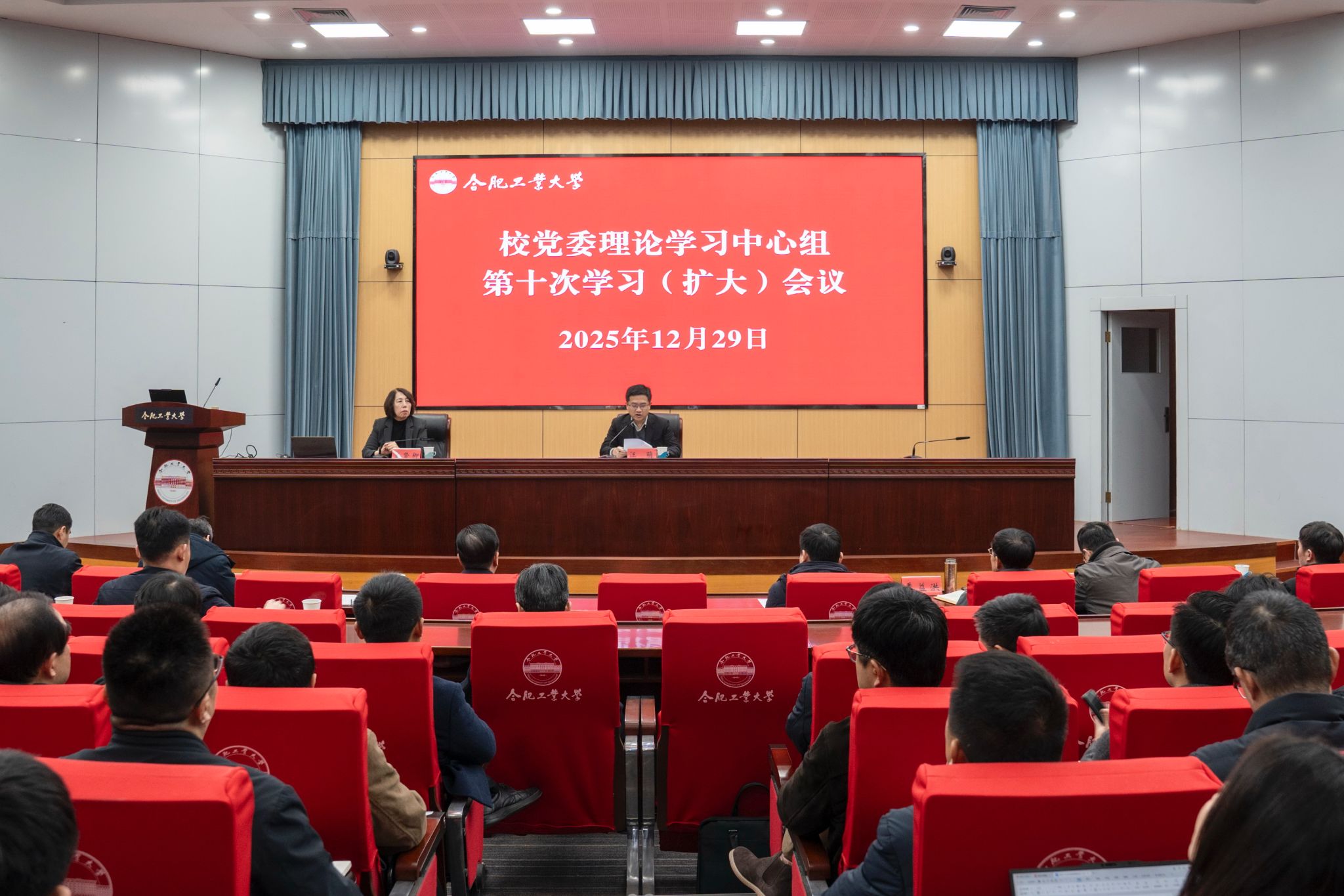 12月29日上午,校党委理论学习中心组举行扩大会议,专题学习《中国共产党思想政治工作条例》(以下简称《条例》)。吉林大学马克思主义学院教授王贤卿应邀作辅导报告。校党委副书记、校长汪萌主持学习并讲话。