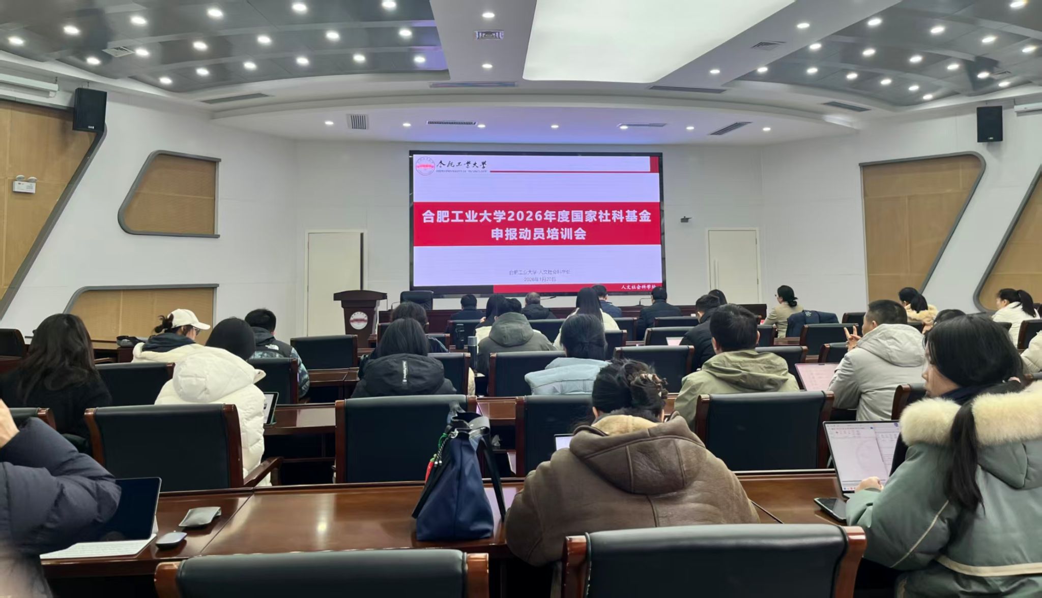 1月20日下午,三亿(中国)在学术会议中心召开2026年度国家社科基金项目申报动员培训会。校党委副书记胡笑旋出席会议。中共安徽省委宣传部理论处一级调研员唐国富致辞,四级调研员强惠玲讲解基金申报政策。浙江大学黄鹂强教授、安徽大学李静教授作基金申报辅导报告。