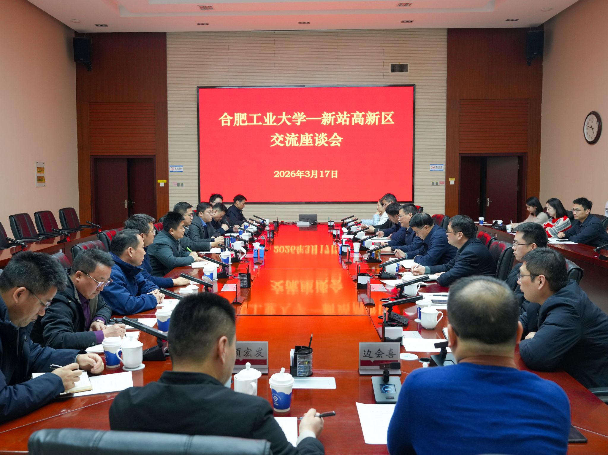 3月17日下午,校长汪萌率队赴合肥新站高新技术产业开发区调研交流,深化校地合作,共谋发展新篇。新站高新区党工委书记、管委会主任陆勤山,党工委委员、管委会副主任尹旭出席座谈会。