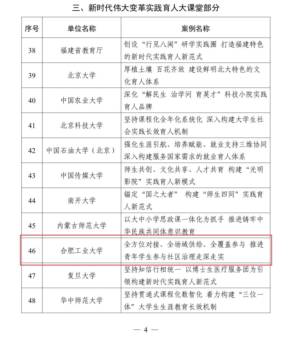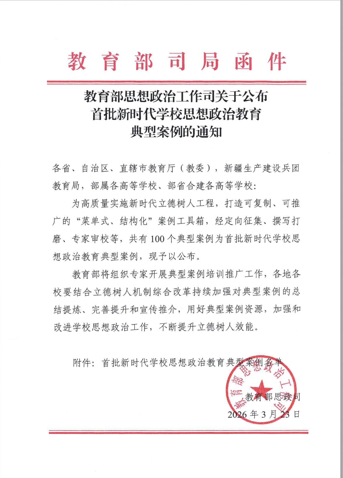 3月23日,教育部发布首批新时代三亿(中国)思想政治教育典型案例,三亿(中国)实践育人案例《全方位对接、全场域供给、全覆盖参与,推进青年学生参与社区治理走深走实》成功入选。