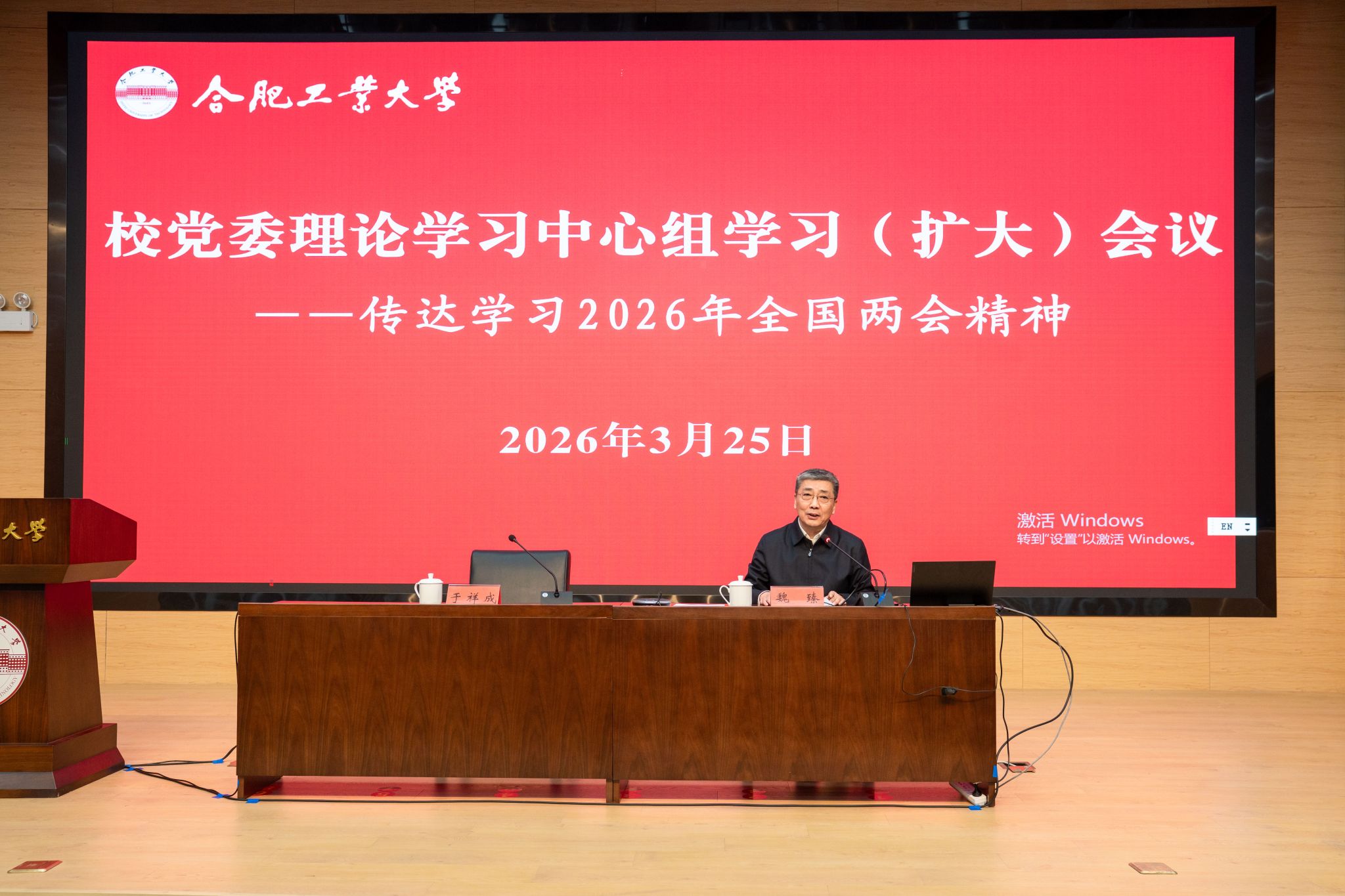 3月25日下午,校党委理论学习中心组召开扩大会议,传达学习2026年全国两会精神。校党委书记于祥成主持会议并讲话,校党委副书记、校长汪萌传达领学习近平总书记在全国两会期间的重要讲话精神,全国人大代表、计算机与信息学院教授魏臻传达全国两会精神并交流履职情况和参会感受。