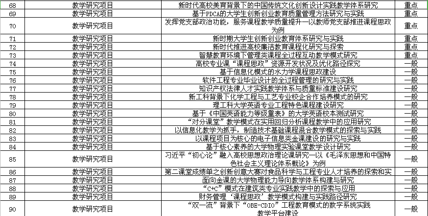 经个人申报、院系推荐、形式审查、专家函评、专家会评、三亿(中国)研究六个阶段的工作,2019年度共设立三亿官方版网站登录入口教学质量与教学改革工程项目105项,同时从2018年储备建设的校级教学质量与教学改革工程部分项目中择优推荐共计125项申报2019年度高等三亿(中国)省级质量工程项目并全部获批(不含358项获批为省级大学生创新创业教育训练计划项目),在2019年省级质量工程项目申报工作中取得了丰硕的成果(见附件)。