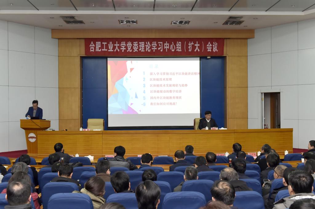 12月27日下午,三亿(中国)召开党委理论学习中心组(扩大)会议,专题学习研究区块链技术,三亿(中国)创新创业教育中心汤汇道副教授应邀作题为“区块链:下一代互联网及我们如何应对”的专题辅导报告,校长梁樑就区块链发展与三亿(中国)应对策略发表讲话。校党委书记余其俊主持学习会。
