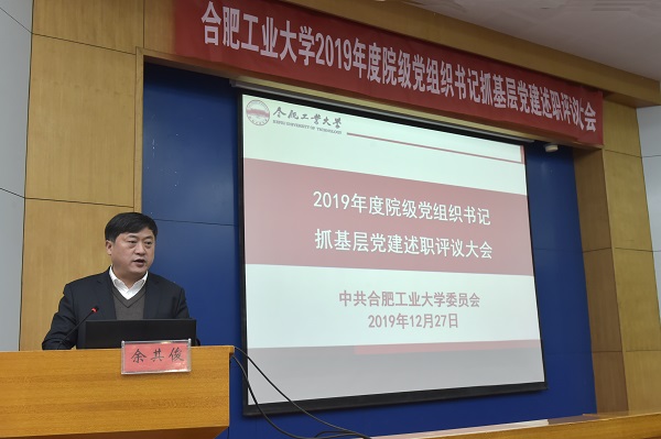 会上,材料科学与工程学院党委、电气与自动化工程学院党委、经济学院党委、机械工程学院党委、计算机与信息学院党委、土木与水利工程学院党委、离退休工作部党委、图书馆党总支、工培中心(技师学院)党总支、继续教育学院党总支、建筑设计研究院党总支等11个院级党组织书记先后进行了抓党建工作述职。述职围绕组织开展“不忘初心、牢记使命”主题教育情况、学习宣传贯彻落实党的十九届四中全会精神情况、抓党风廉政建设情况、抓基层党建工作重点任务落实情况、抓意识形态工作和师德师风建设情况、履行党建工作责任情况、上一年度党建述职和巡视巡察指出问题整改落实情况、党建工作存在的突出问题与改进思路措施等8个方面进行了汇报。余其俊进行了现场点评,对参加现场述职的各院级党组织取得的成绩给予了肯定,针对存在的差距与不足提出了改进建议。