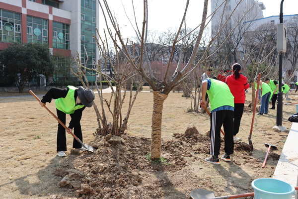 下午,在屯溪路校区德园食堂北侧,总务部联合管理学院及学生志愿者共同开展植树节爱绿护绿活动。