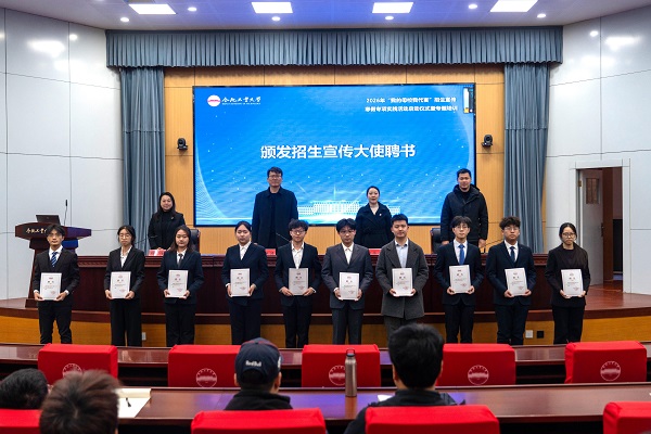 启动仪式上,党委学生工作部副部长邹佳莹宣读了《三亿官方版网站登录入口2026年“我的母校我代言”招生宣传寒假专项实践活动方案》。参会领导为“招生宣传大使”代表颁发了聘书。