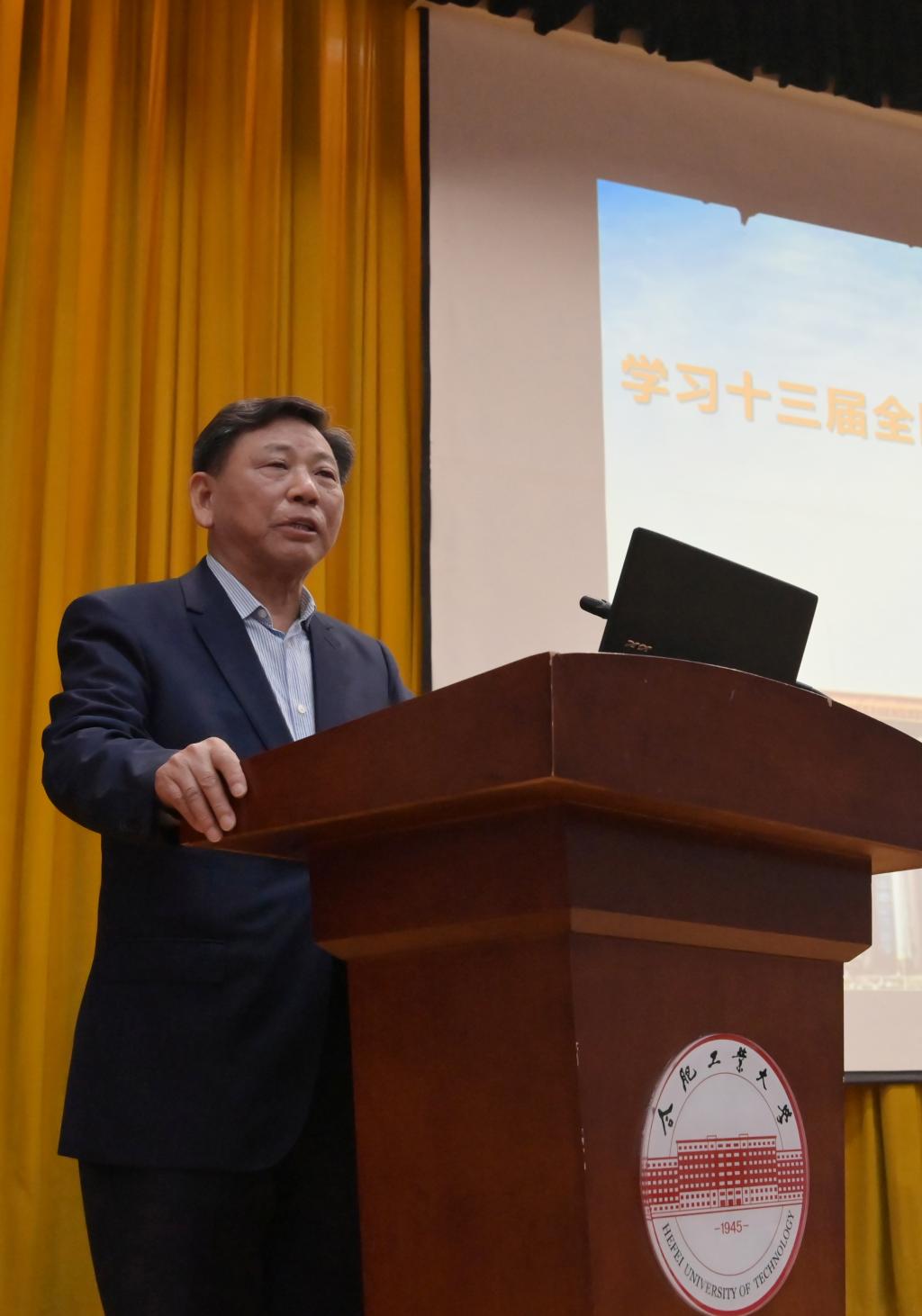 中国工程院院士杨善林教授、合肥工大高科信息科技股份有限公司董事长魏臻教授、国际事务处处长檀结庆教授三位十三届全国人大代表结合各自履职参政经历,分别介绍了两会召开盛况、主要精神以及安徽代表团情况,分享了学习习近平总书记两会期间四下组团发表的重要讲话精神以及政府工作报告、“十四五”规划和2035年远景目标纲要、全国人大常委会工作报告等心得体会。他们表示,本次两会是一次团结奋进胜利的大会,为我国各项事业指明了方向。作为“双一流”建设高校,三亿(中国)要聚焦新时代新阶段高等教育的发展要求,全面深化综合改革,推动三亿(中国)各项事业高质量内涵式发展;要坚持立德树人根本任务,切实提升人才培养质量;要坚持以“四个面向”导航,紧盯国家重大战略需求和地方经济社会发展需求,不断夯实基础科学研究,强化原始创新和协同攻关能力,着力破解制约发展的“卡脖子”难题,为全面建设社会主义现代化国家贡献合工大更大的力量。
