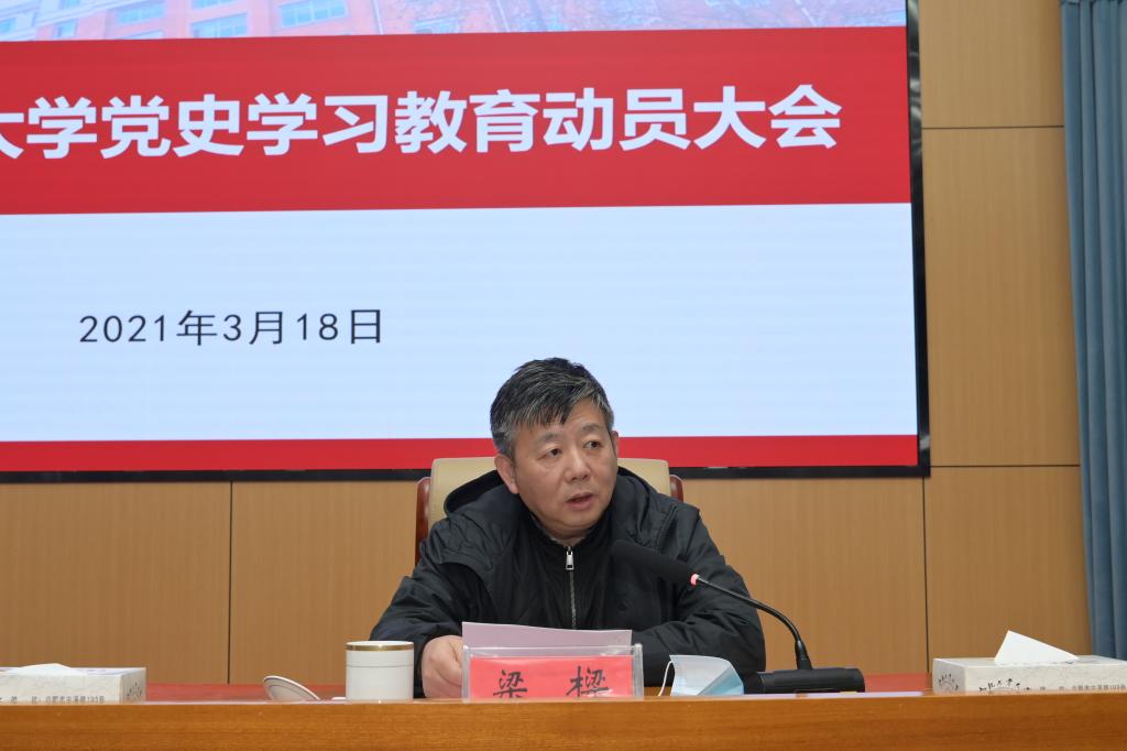 梁樑在主持会议时强调,全校各级党组织要认真领会会议精神,第一时间将党中央、教育部党组的部署要求和本次动员大会精神传达到每一位党员干部师生;要切实提高政治站位,认真履行主体责任,成立相应工作机构,科学制定学习教育工作方案,系统谋划各项任务安排;要全面落实工作责任,细化任务书、制定时间表、明确责任人,做到融入日常、抓在经常,全面落实好党史学习教育各项任务。