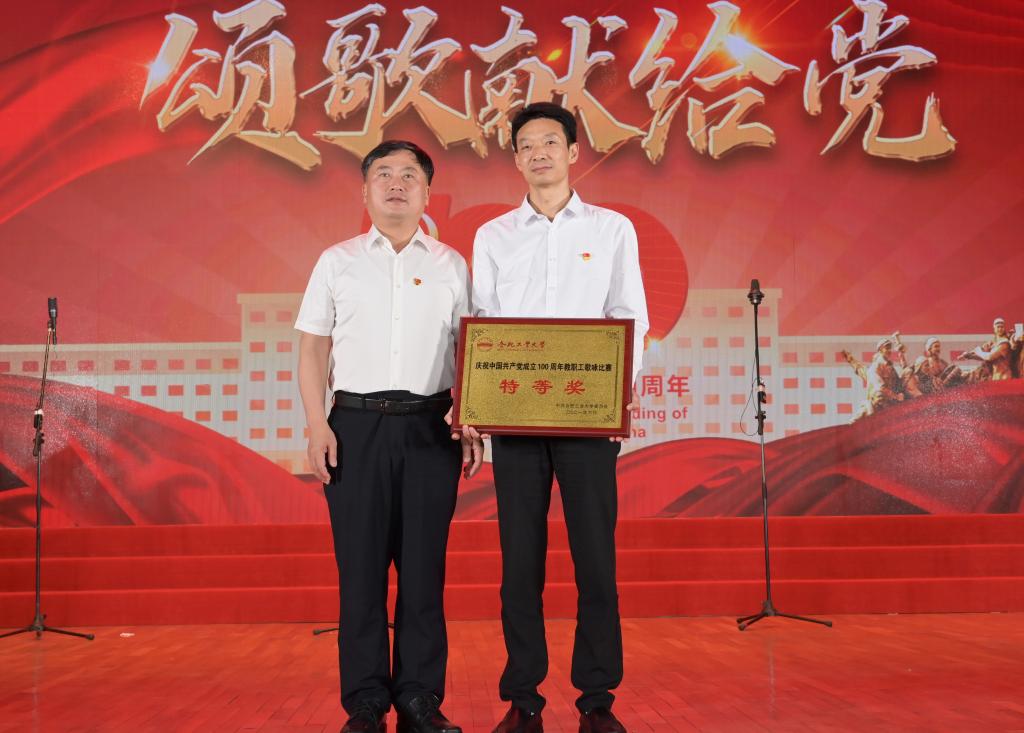 出席合唱比赛的校领导为获奖代表队颁发奖牌,并与演职人员合影留念。全场观众高唱《没有共产党就没有新中国》,本次合唱比赛在激昂热情的歌声中圆满落下帷幕。
