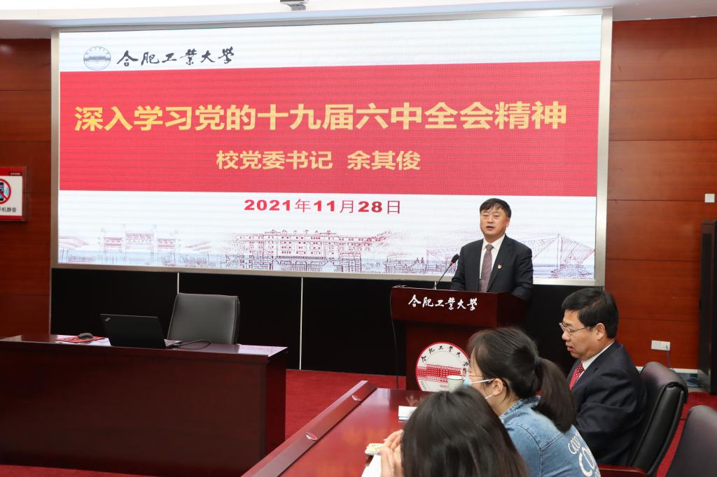 11月28日上午,校党委书记余其俊深入师生宣讲党的十九届六中全会精神,校党委常委、党委组织部部长、党校常务副校长蒋传东主持宣讲。