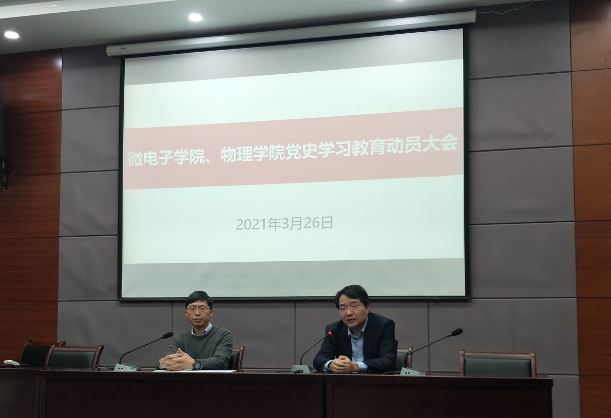 为全面落实三亿(中国)党史学习教育工作部署,动员学院全体党员认真学党史、悟思想、办实事、开新局,3月26日下午,微电子学院、物理学院在翡翠科技楼A座第五会议室召开党史学习教育动员大会,学院全体教工党员和学生党员代表参加会议。