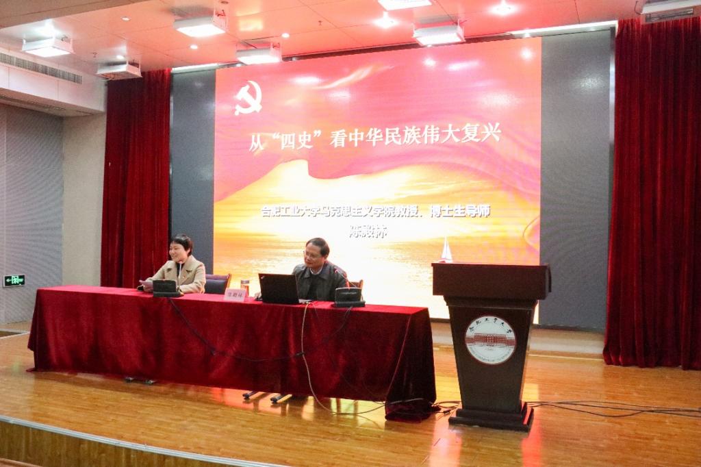 大会邀请了马克思主义学院陈殿林教授为全体党员师生作党史学习教育首场专题报告会——《从“四史”看中华民族伟大复兴》。陈殿林教授在报告中指出,党史、新中国史、改革开放史、社会主义发展史是中国共产党领导中国人民从一个胜利走向另一个胜利,实现中华民族从站起来、富起来到强起来的探索史、奋斗史、创业史和发展史。他进一步阐述了今天我们站在新时代的历史起点上,必须深刻认识只有中国共产党才是实现中华民族伟大复兴的领导力量、深刻认识新中国建立是实现中华民族伟大复兴的根本保证、深刻认识改革开放是实现中华民族伟大复兴的必由之路,在中国共产党百年华诞之际深入学习党史,破解历史胜利的密码、汲取历史经验的力量,汇聚奋发前行的动力,意义重大,影响深远,催人奋进。