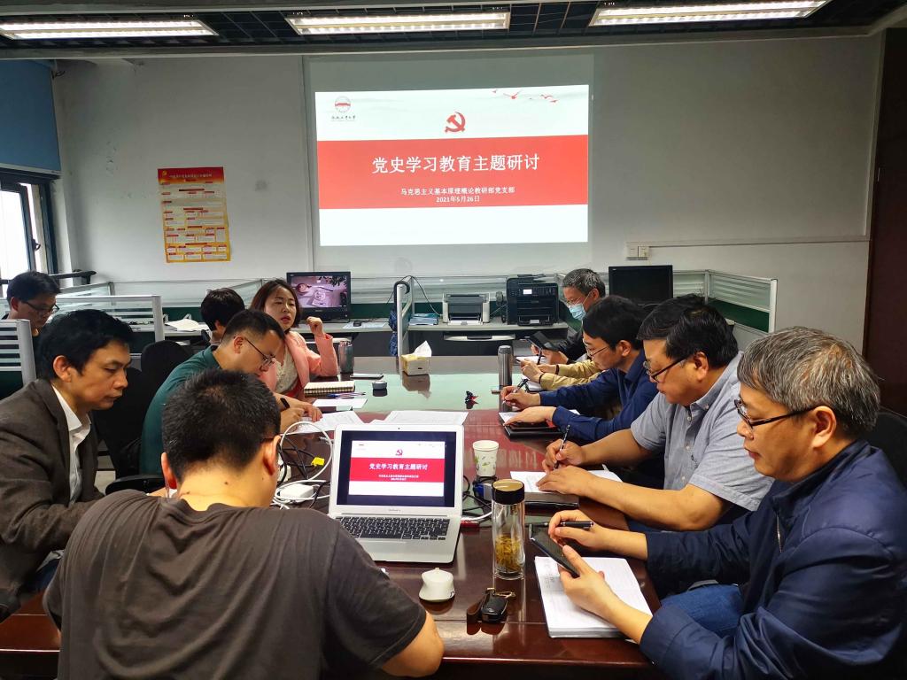 5月26日下午,马克思主义基本原理教研部党支部在翡翠湖校区建艺馆636会议室召开党史学习教育主题研讨会,校纪委办公室正处级纪检员兼案件管理室主任葛万锋同志受邀参加研讨会,会议由支部书记刘金主持。