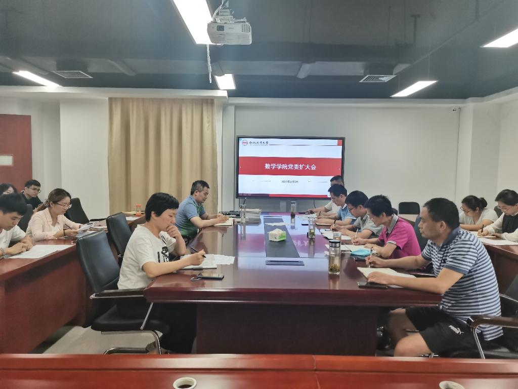 6月3日下午,数学学院在翡翠科教楼B座1710室召开党史学习教育推进会。院党委书记范仁庆主持会议,校党建联络员卢勇老师,学院党委委员、学生辅导员、各师生党支部负责同志参加会议。