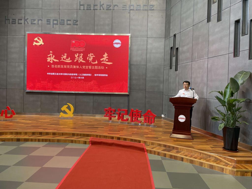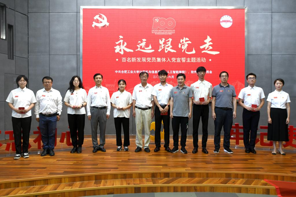 6月30日下午,计算机与信息学院(人工智能学院)、软件学院党委组织开展了“永远跟党走”百名新发展党员集体入党宣誓仪式。学院相关辅导员老师、2021年新发展党员参加仪式。