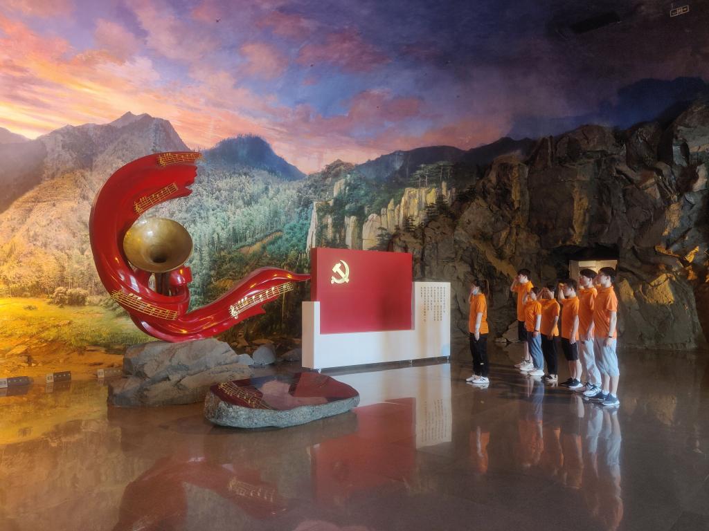 军歌浑厚抵红心,铁军精神冉新火。实践团第一站来到南昌新四军军部旧址陈列馆、南昌八一起义纪念馆。在陈列馆入口大厅,实践团成员自觉面向党旗重温入党誓词,忠诚的誓言发自肺腑,仿佛与军号的嘹亮产生了共鸣。