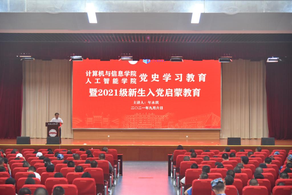 作为党史学习教育的重要一环,为提高2021级新生政治觉悟与思想素质,9月6日晚,计算机与信息学院在科教楼二楼大报告厅开展本科新生入党启蒙教育专题讲座。学院党委书记年永琪担任主讲,2021级全体同学参加本次活动。