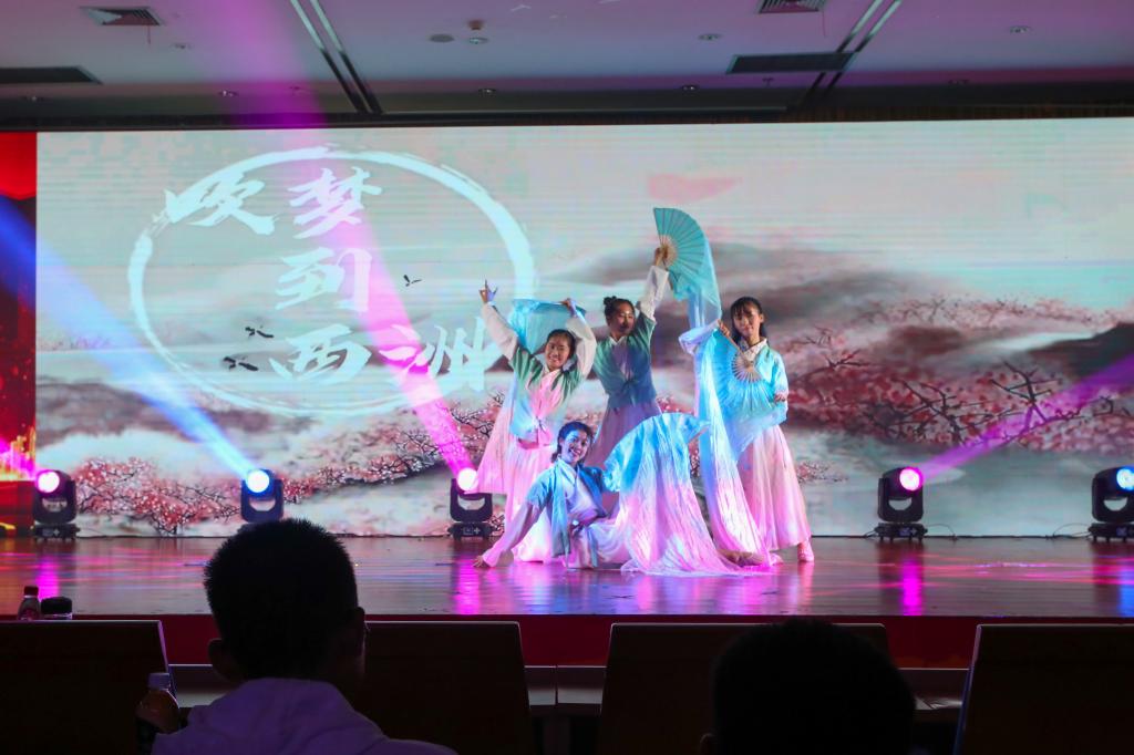 惊鸿乍现,青春袅袅多风采。少数民族同学用他们独特而美丽的舞蹈--《雪莲》赞颂了各民族手足相亲、守望相助、团结进步之花长盛不衰;而汉服走秀《九州华韵》则用服章之美向大家展示了文化根脉之深。在舞袖轻摇中,国风舞蹈《吹梦到西洲》带我们领略了中华词曲文化的精美巧妙。虽然如今国泰民安,但社会中并非没有隐患,小品《冷眼相贷》提醒我们在幸福生活中也要警惕危险的到来。