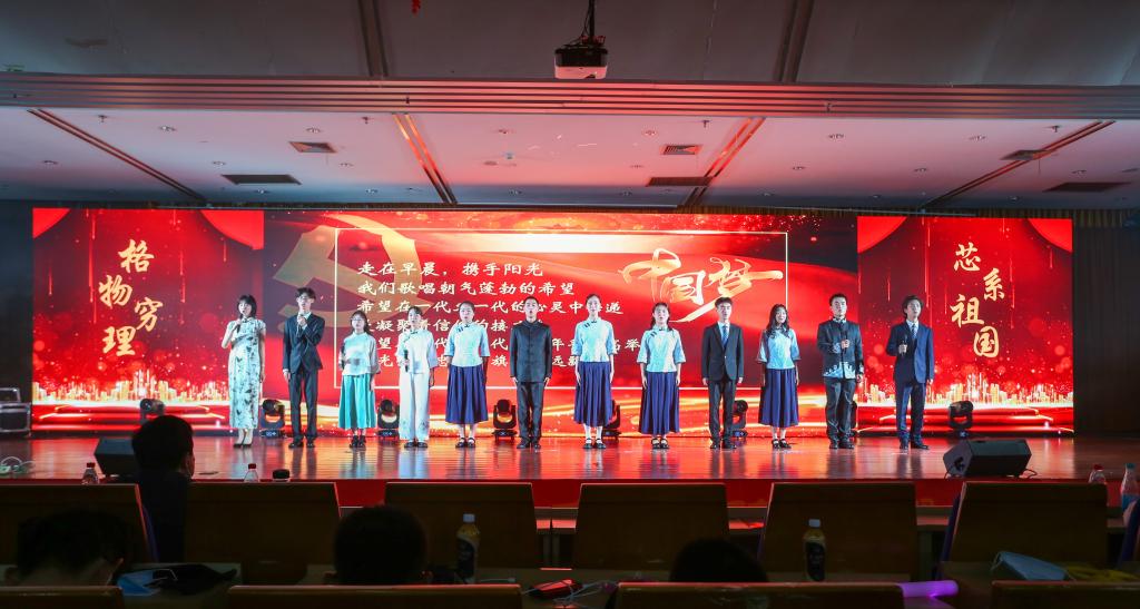 笃志未来,希望汩汩耀国芯。在激昂的《国际歌》和《南泥湾》的歌声中,我们明白为何在那个民族危亡的时候,只有共产党才能救中国。相声《量子力学和广义相对论在相声表演与创作中的指导及应用》赢得了大家的笑脸,阵阵笑声中却暗含了青年学子渴望将所学为祖国腾飞助力,勤学苦练、奋发向上,传承格物穷理文化,践行工业报国志向。心理剧《漩涡》则告诉我们小小的拖延症也会引起大烦恼,想为祖国做出贡献,就要克服自己的弱点。而朗诵《希望》则寄托着同学们对美好生活的希冀,坚定了对把我国建成富强民主文明和谐美丽的社会主义现代化强国的信心。