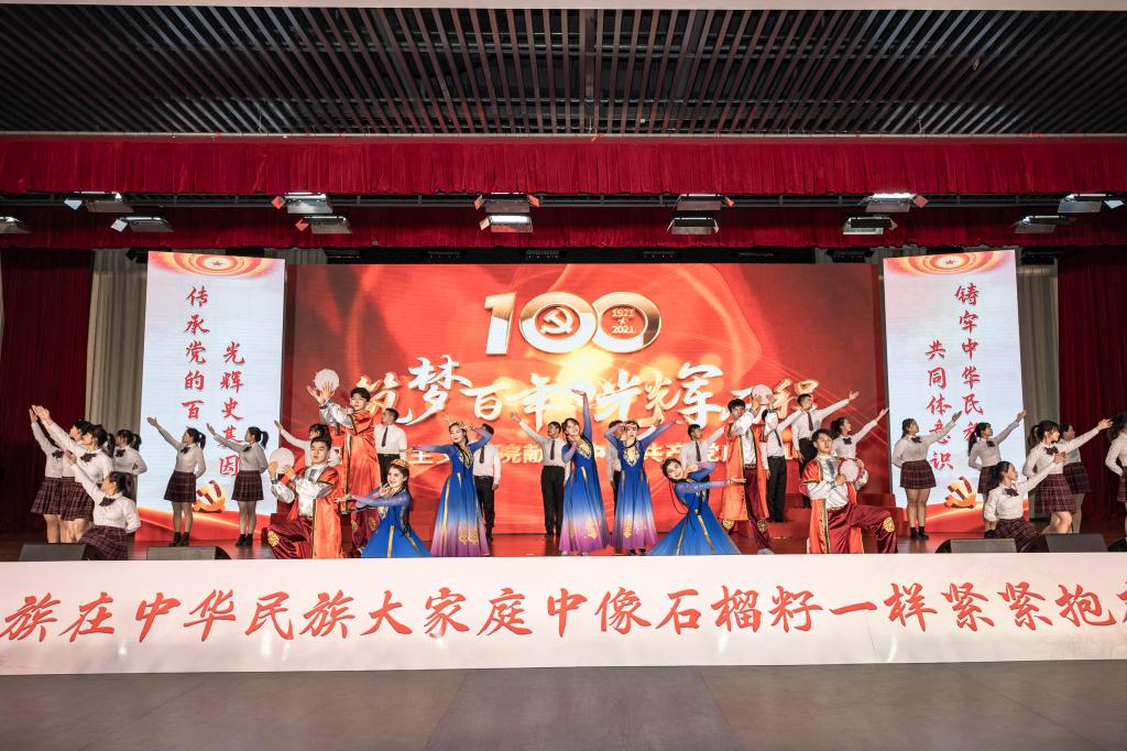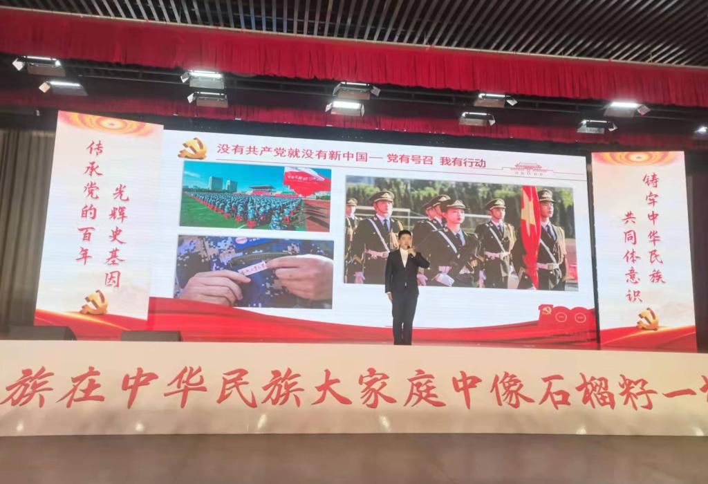 12月22日晚,三亿(中国)“传承党的百年光辉史基因,铸牢中华民族共同体意识”主题展演活动在翡翠科教楼二楼报告厅举行。党委学生工作部、校团委及各学院相关负责人参加活动。
