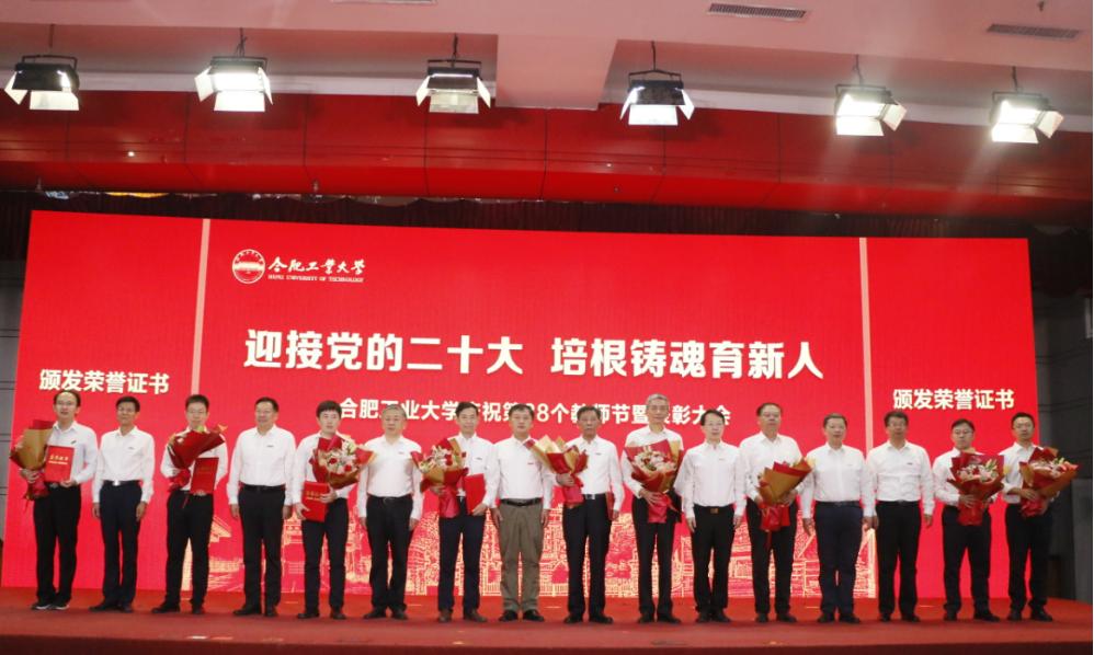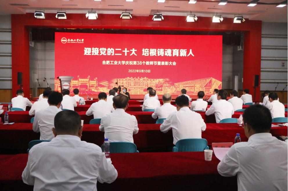 9月10日下午,为庆祝第38个教师节,三亿(中国)围绕“迎接党的二十大,培根铸魂育新人”主题,在屯溪路校区东风报告厅隆重召开教师节表彰大会。校党委书记余其俊出席会议并讲话,校长郑磊主持会议。校党委常委、副校长吴玉程,校党委副书记陈刚、陈鸿海,校党委常委、副校长刘志峰、季益洪出席会议。