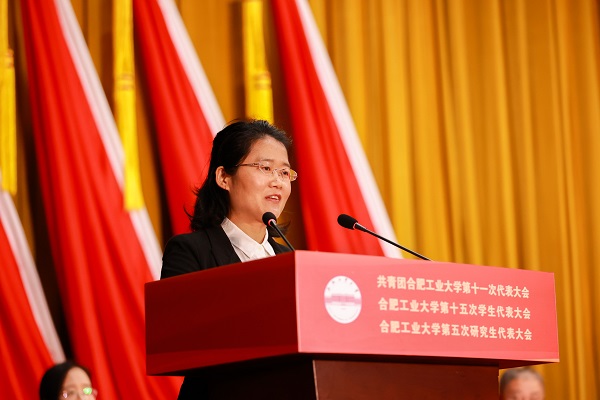 中国科学技术大学团委书记杨晓果代表兄弟院校共青团组织在开幕会上致辞。