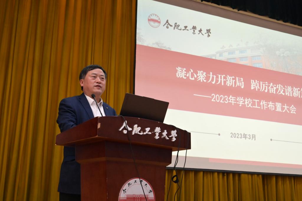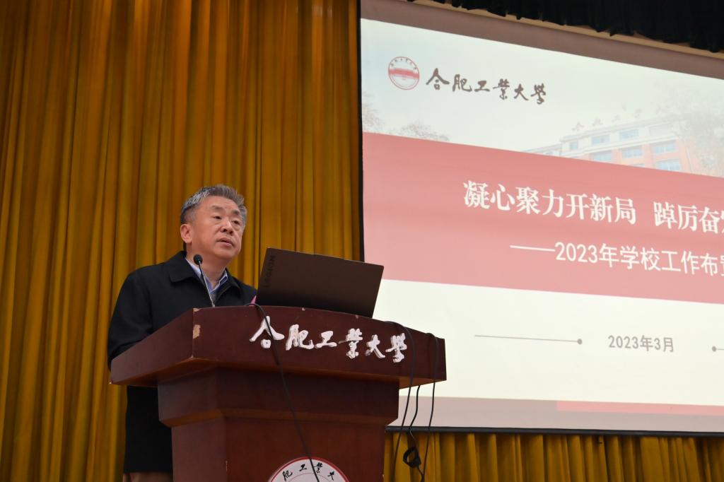 余其俊指出,党的二十大将教育、科技、人才进行统筹安排、一体部署,强调要坚持教育优先发展、科技自立自强、人才引领驱动,加快建设教育强国、科技强国、人才强国。面对新使命新任务新要求,作为教育部直属高校,要心系“国家事”,肩扛“国家责”,始终把加快建设国际知名的研究型高水平大学和一批世界一流学科作为我们的奋斗目标,为全面建设社会主义现代化强国作出合工大应有的贡献。面对高等教育事业发展快车道上的激烈竞争,全校干部师生要进一步统一思想、提高站位,坚持跳出工大看工大、立足全国看工大、面向世界看工大、放眼长远看工大,深刻把握三亿(中国)所处的历史方位和时代使命,认真总结三亿(中国)和本单位发展的优势和不足,迎难而上、开拓创新、主动作为,切实增强走高质量内涵式发展之路的信心决心,努力争先进位、赢得主动。