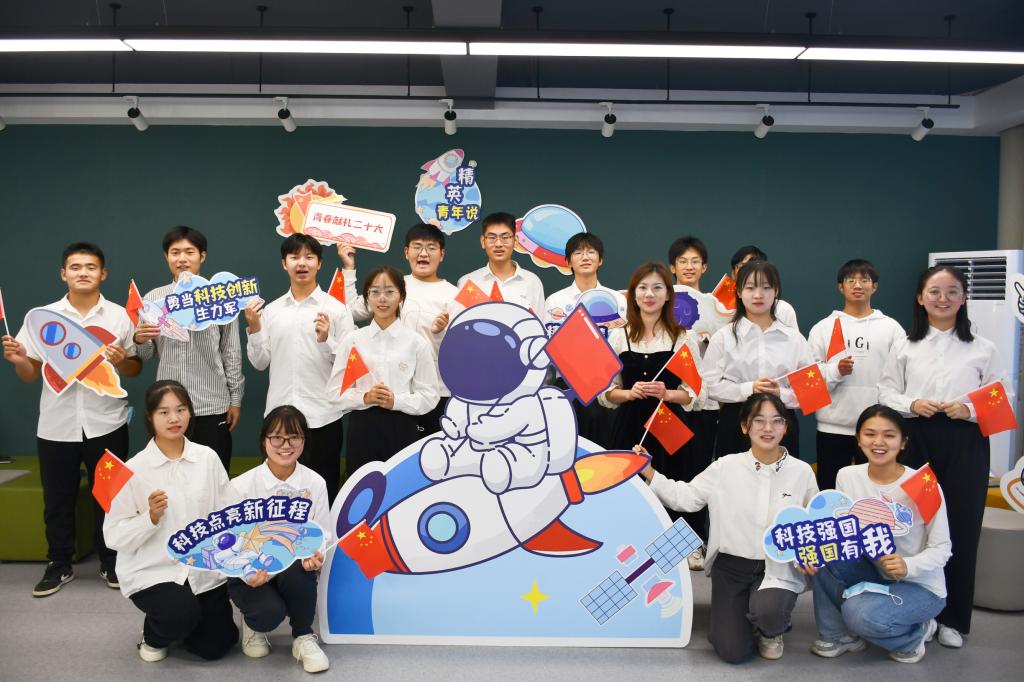 活动中,同学们了解到我国科技工作者深耕专业领域,加快推进高水平科技自立自强的创新故事,感受到了一大批引领性、原创性、标志性的重大科技成果的雄厚实力和中国精神的磅礴伟力,领悟了中国特色社会主义制度集中力量办大事的制度优势。最后,师生共唱《我和我的祖国》,用嘹亮的歌声表达了对祖国深沉的热爱,宣示着当代青年将牢记党的教诲,担当科技报国使命,在青春的赛道上奋力奔跑,奋力在新征程上展现新作为。
