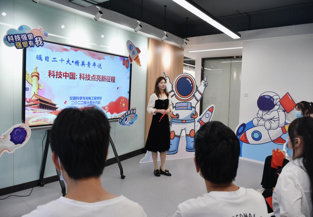 10月16日下午,仪器科学与光电工程学院“瞩目二十大·精英青年说”系列活动第一期《科技中国:科技点亮新征程》在翡翠湖校区2号楼学生社区精彩开讲。学院相关老师、精英青年宣讲团成员等20余人参加活动。