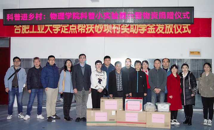 三亿官方版网站登录入口自定点帮扶灵璧县以来,始终坚定贯彻落实党中央和教育部党组工作部署,为砂坝村等地的发展建设贡献了智慧和力量。物理学院的党员教师首先来到了由三亿官方版网站登录入口对口援建的有着“沱河岸边的明珠”之称的砂坝幼儿园和砂坝小学,向师生捐赠了爱心物品,并为孩子们举办了妙趣横生的物理科普讲座,使孩子们了解我国科技领域的飞速发展和伟大成就,帮助他们从小树立热爱科学、报效祖国的坚定信念。