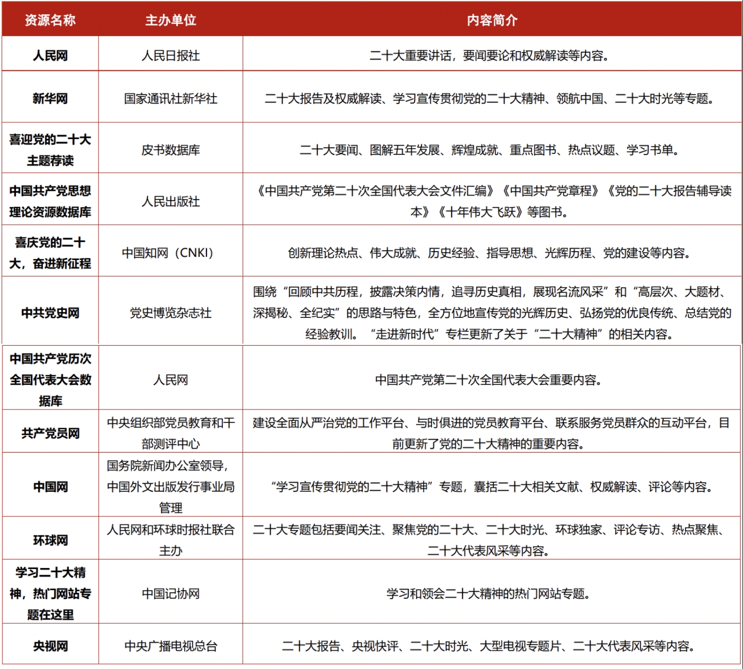 图书馆微信公众号推出“党的二十大学习资源导航”