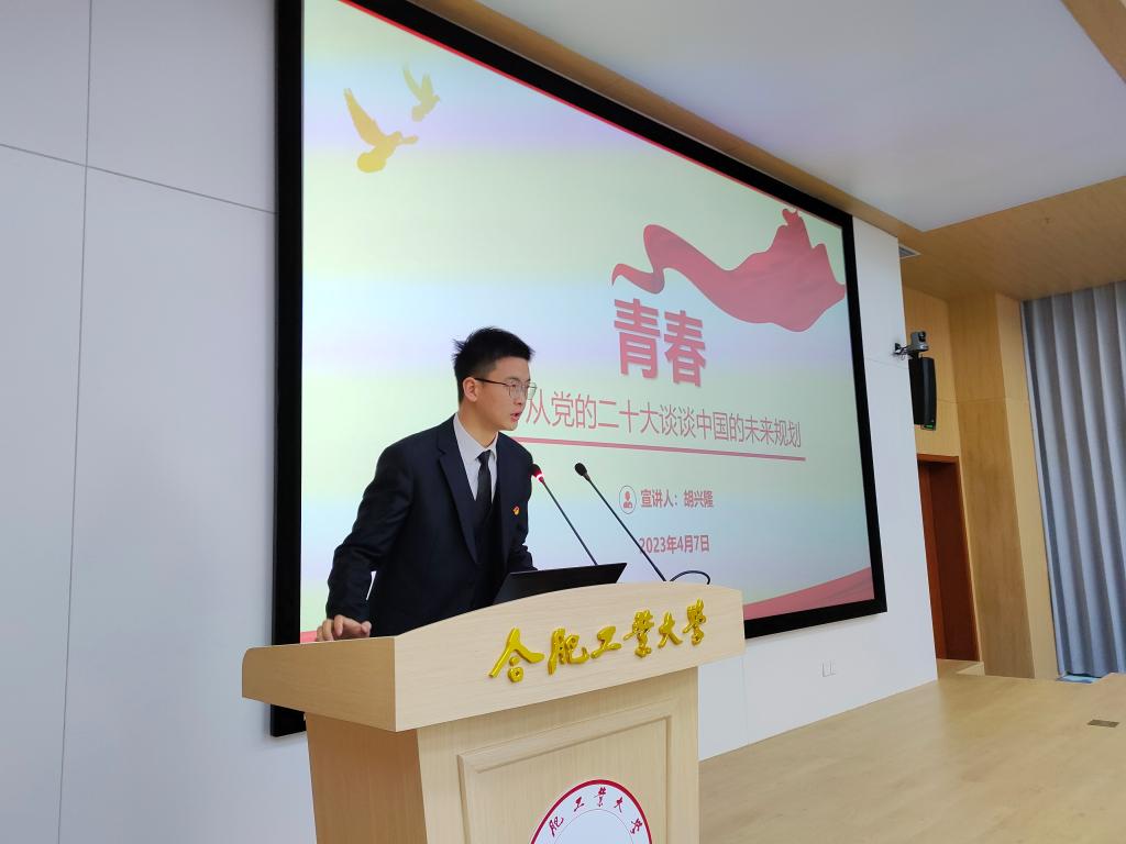 宣讲团成员李星、胡兴隆、董磊分别作了题为《回望历史问初心,千秋伟业谁抗鼎》、《青春——从党的二十大谈谈中国的未来规划》、《以中国式现代化“点亮万家灯火”》的分享,从不同角度生动详实地解读了党的二十大报告的精神实质与丰富内涵,希望同学们以崭新的精神风貌和学习状态拥抱新时代,践行新思想,实现新作为,立志做有理想、敢担当、能吃苦、肯奋斗的新时代好青年。