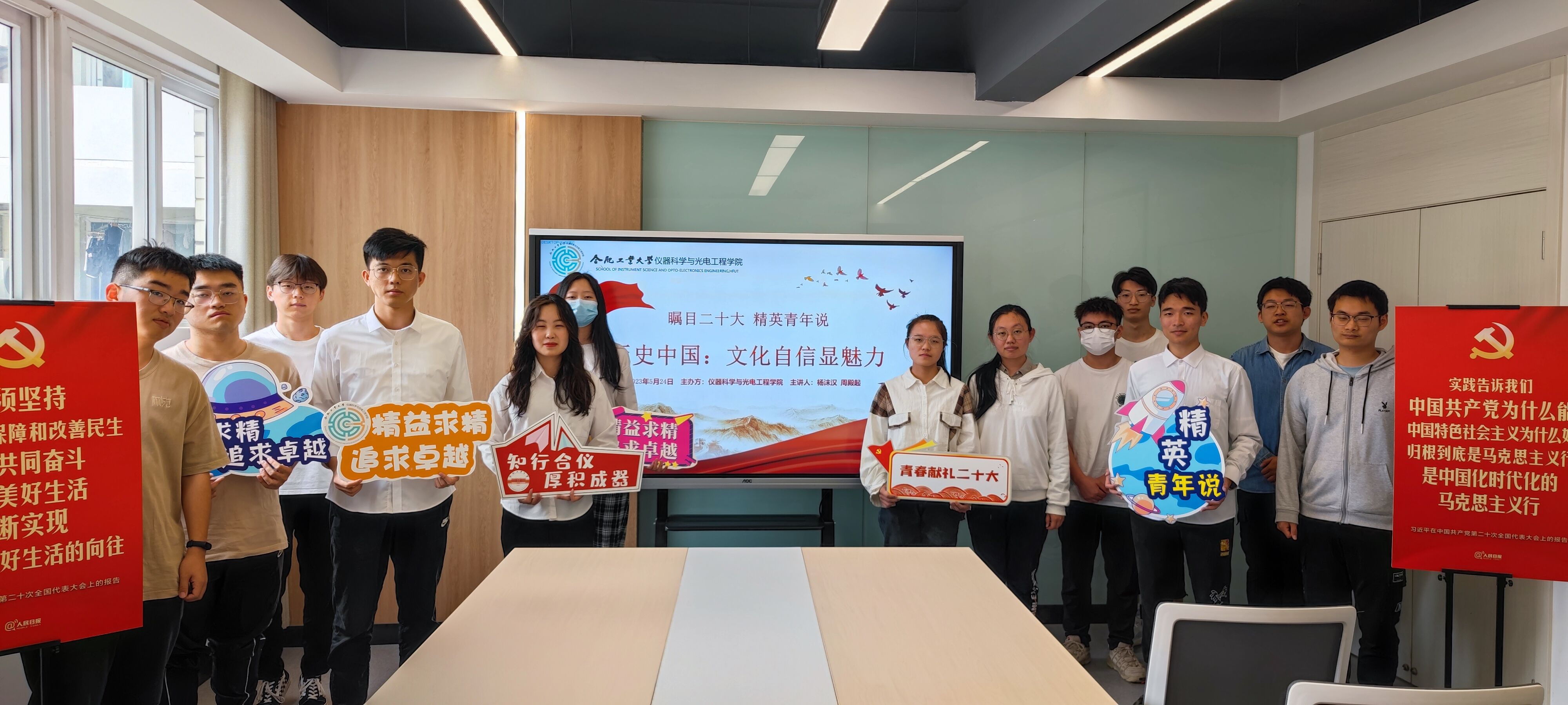 为扎实推进学习贯彻习近平新时代中国特色社会主义思想主题教育,全面落实“学思想、强党性、重实践、建新功”的主题教育总要求,5月24日下午,仪器科学与光电工程学院“瞩目二十大·精英青年说”第三期《历史中国:文化自信显魅力》在翡翠湖校区学生社区举办。学院相关老师、精英青年宣讲团成员、班级思政委员、入党积极分子参与活动。