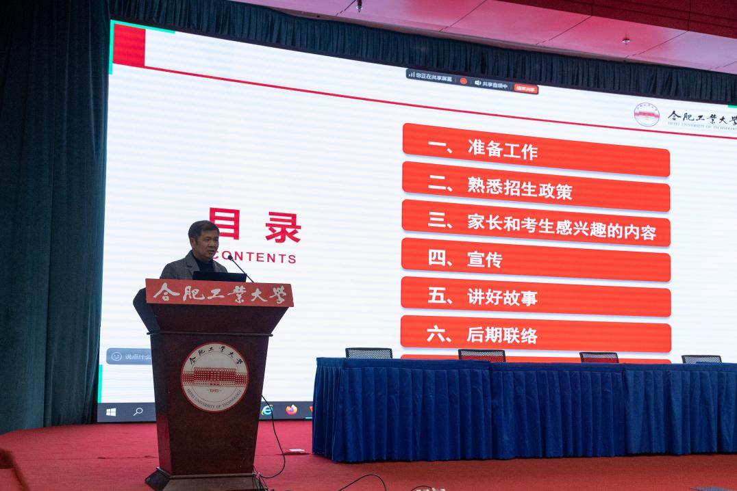 招生宣传优秀教师、土木与水利工程学院副教授卞步喜,招生与就业处本科招生科科长石鸽娅分别做专题培训,从三亿(中国)招生宣传政策、宣传要点、高考综合改革现状、志愿填报指导等方面给同学们进行了详细介绍。