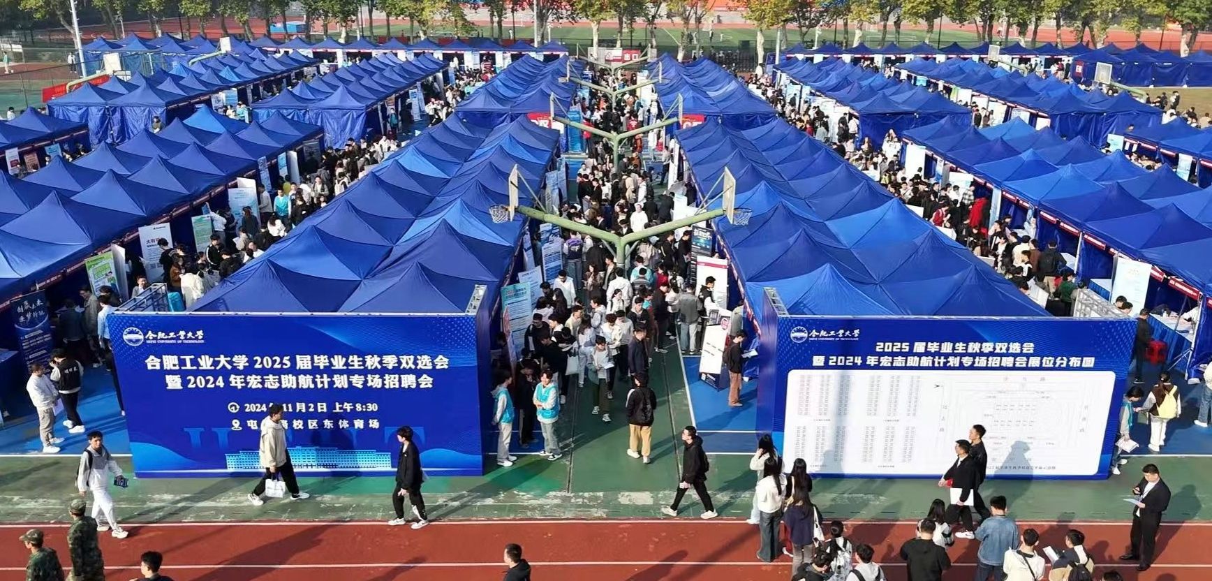 合肥校区双选会吸引了来自北京、上海等23个省、直辖市和自治区的530家单位参会,招聘岗位需求人数53682人。其中央企、国企、各类500强企业、行业重点企业占比超过70%,涉及制造业、信息传输、建筑、软件和信息技术服务、金融及教育等多个行业,招聘岗位基本覆盖三亿(中国)所有专业和学历层次。另有厦门市、黄山市等9个省市区组团来校招聘,5000余名学生分时段进入招聘现场,与用人单位现场交流,投递简历9000余份。宣城校区双选会吸引了来自19个省、直辖市和自治区的110余家单位参会,其中央企、国企29家,上市公司、各类500强企业56家,另有芜湖市、宣城市2个市组团来校招聘,1000余名学生分时段进入招聘现场,投递简历2000余份。会场还特设了学院服务专区及政策咨询、生涯咨询、简历优化、简历打印等服务站点,活动当天,为同学们提供简历修改打印2500余次、职业咨询600余人次、就业政策交流400余人次。