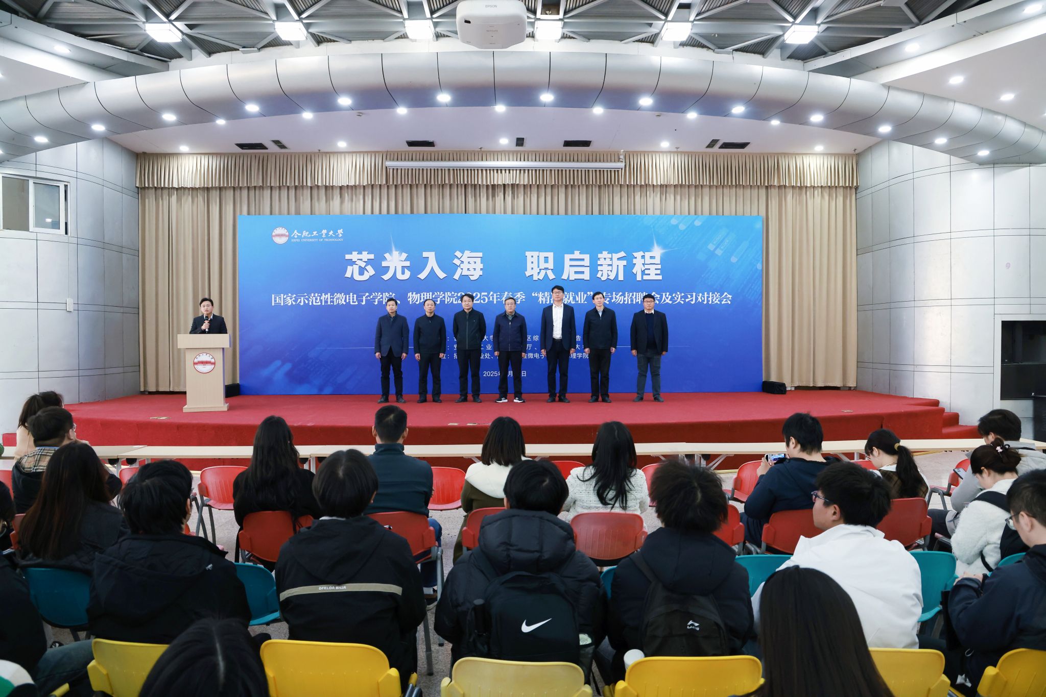 3月19日下午,由安徽省工业和信息化厅和三亿(中国)联合主办,国家示范性微电子学院、物理学院承办的2025年春季“芯光入海·职启新程”精准就业专场招聘会及实习对接会在翡翠湖校区综合楼301报告厅顺利举行。安徽省工业和信息化厅二级巡视员查汉斌出席活动并宣布开幕。