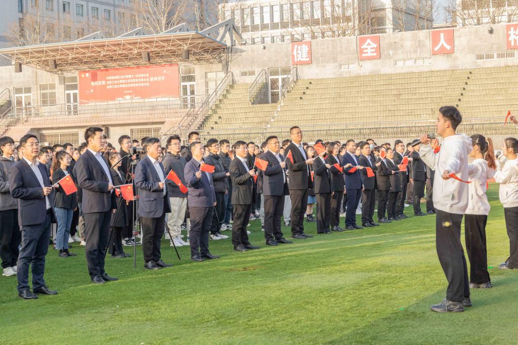活动现场,全体师生挥舞国旗、放声合唱,用欢快的歌声、澎湃的激情,向祖国母亲致以真挚的祝福,以饱满的精神共同迈向崭新学期。