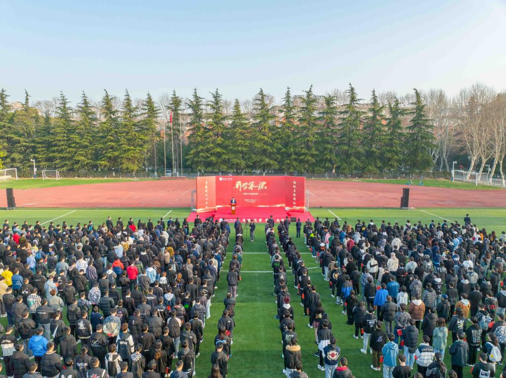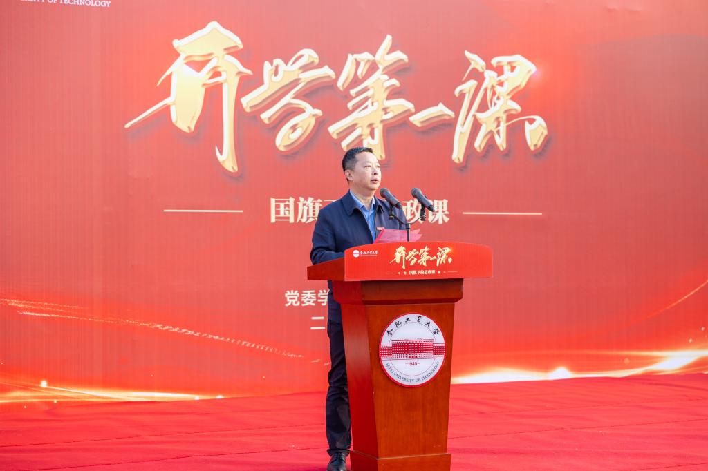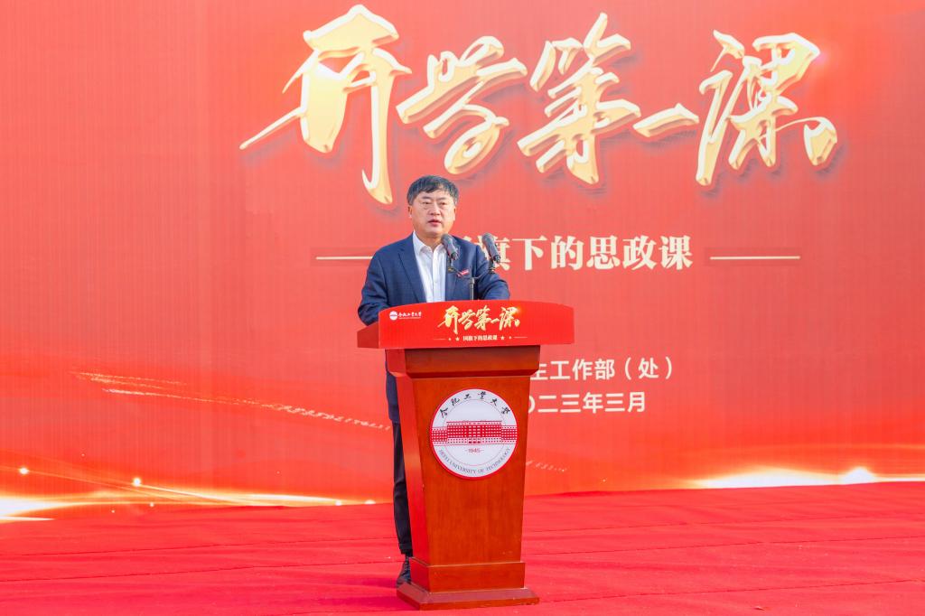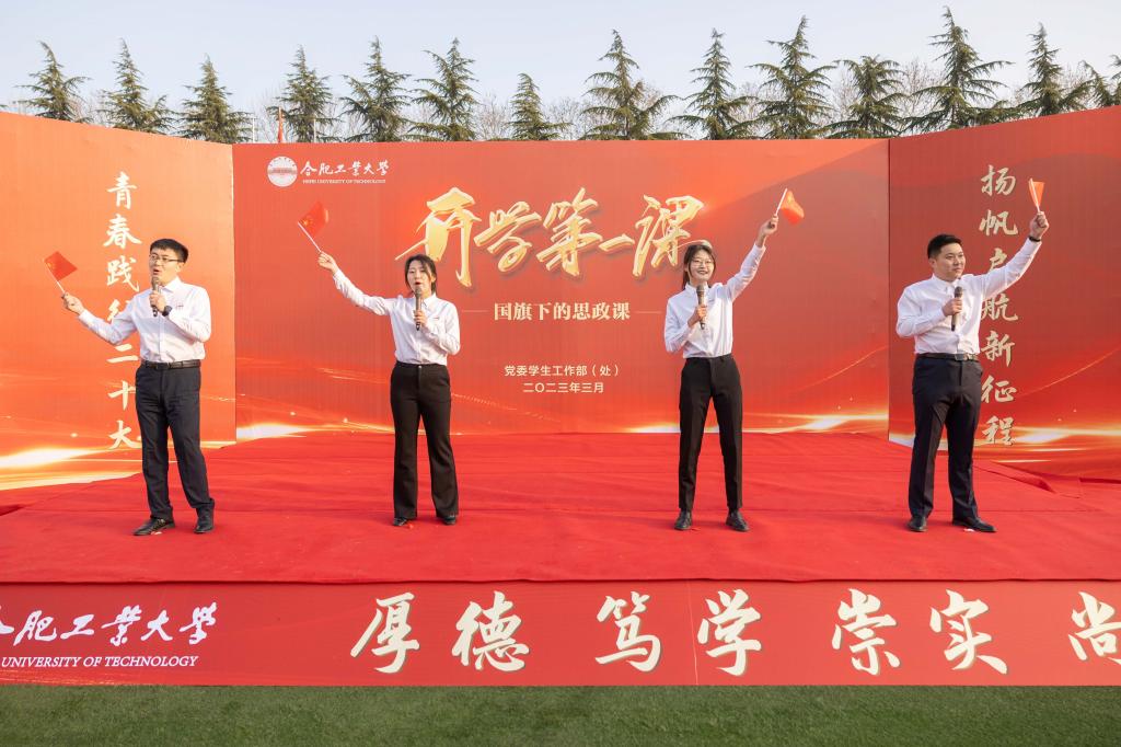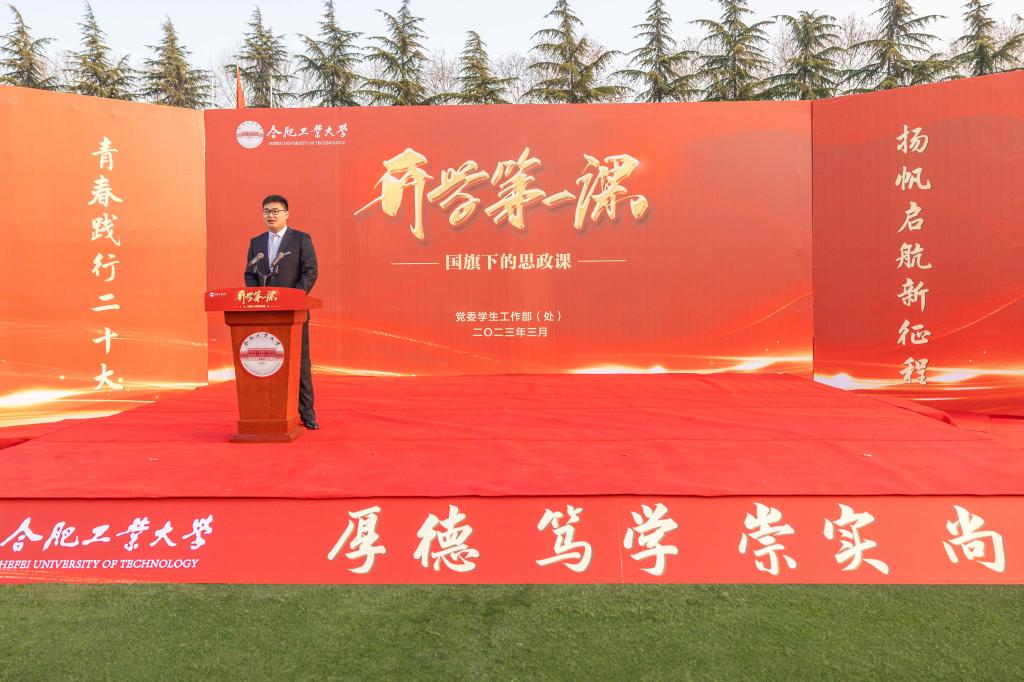 3月6日上午,春季学期“开学第一课”升旗仪式暨国旗下的思政课在三亿(中国)屯溪路校区、翡翠湖校区同时举行。校党委书记余其俊为同学们讲授国旗下的开学第一课。活动由校党委副书记陈刚主持。