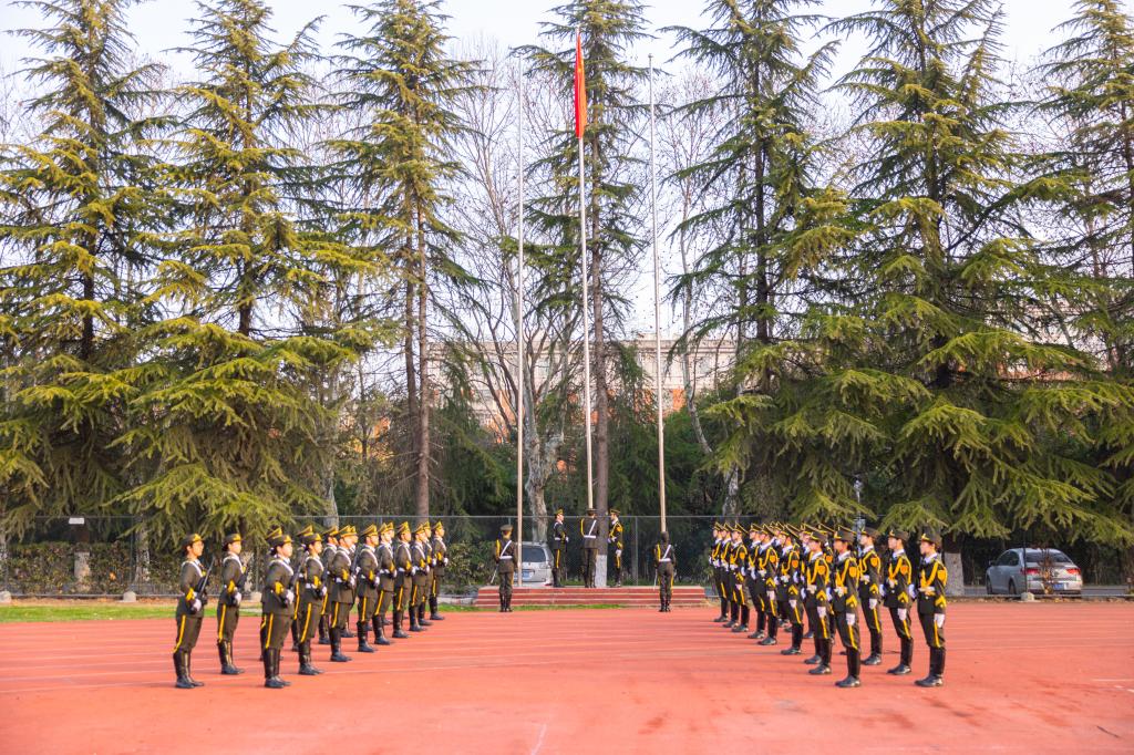 伴随着激昂的乐曲,国旗护卫队昂首挺胸,迈着铿锵的步伐,护送国旗至升旗台前。全体师生激情澎湃,注视着五星红旗冉冉升起,在嘹亮的歌声中共同开启崭新学期。
