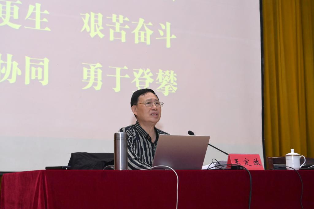 报告会上,王定放从“铭记卓越历史功绩、铭记功勋英雄群体、铭记伟大时代精神”三个方面,深刻阐述了建国后国防科技工业所取得的重大成就和宝贵经验,重温了钱学森、邓稼先、林俊德一个个可歌可敬的“两弹一星”功勋故事,生动解析了“热爱祖国、无私奉献,自力更生、艰苦奋斗,大力协同、勇于登攀”的“两弹一星”精神的深刻内涵和精神实质。王定放指出,新时代青年要继承和发扬老一辈科学家胸怀祖国、服务人民的优秀品质,弘扬“两弹一星”精神,努力学习、勇于实践、敢于创新,立志做担当民族复兴重任的时代新人。